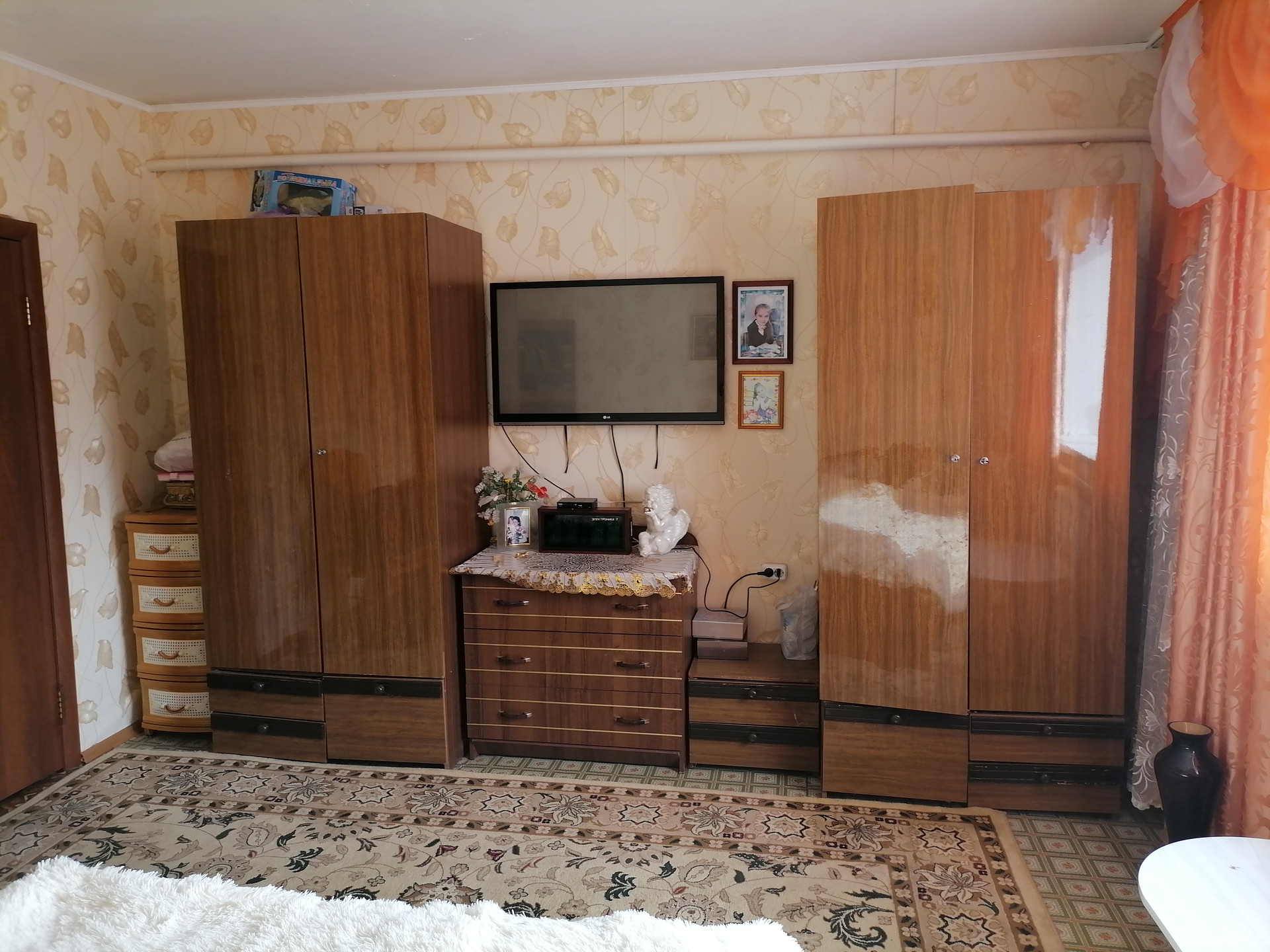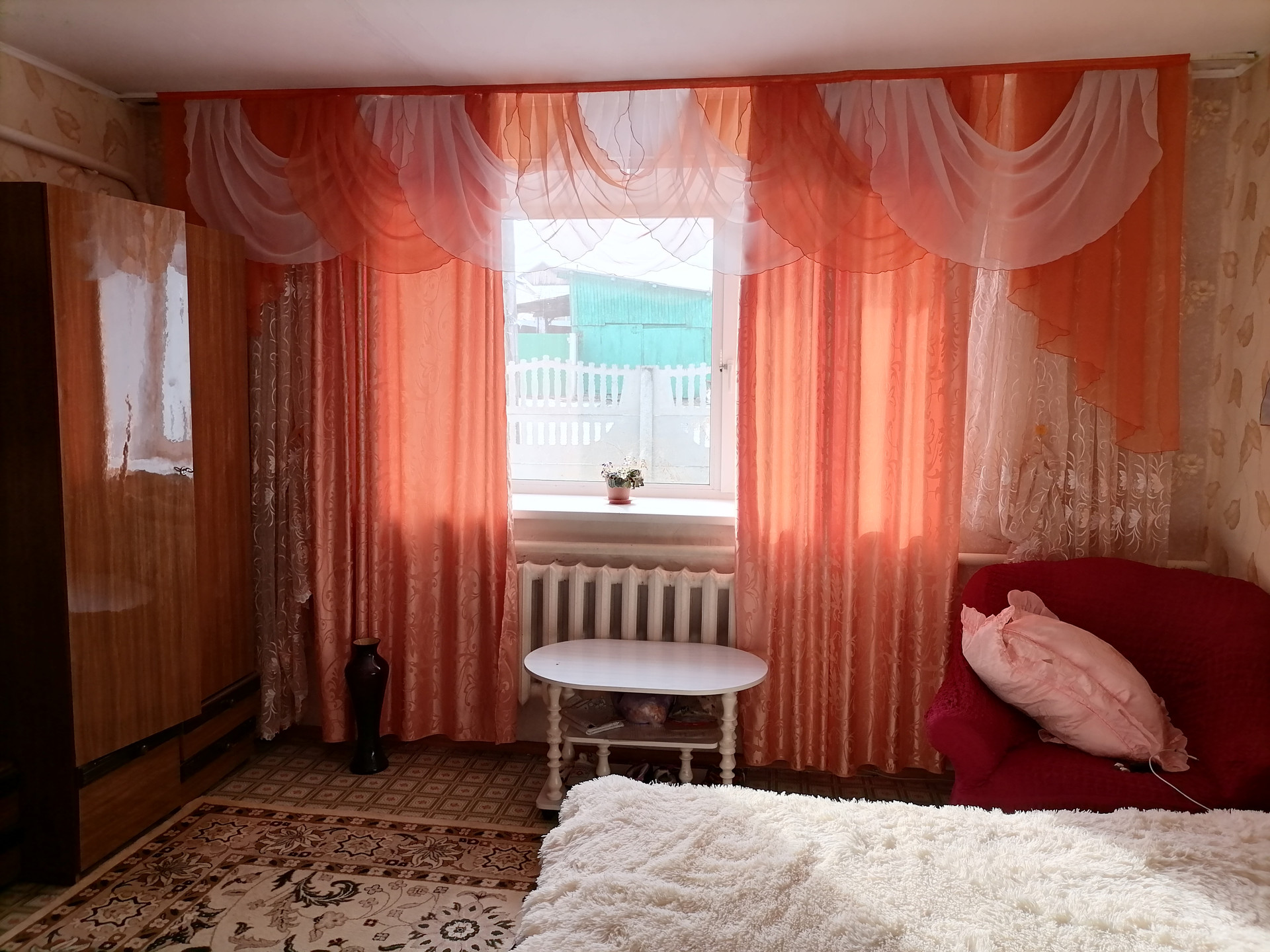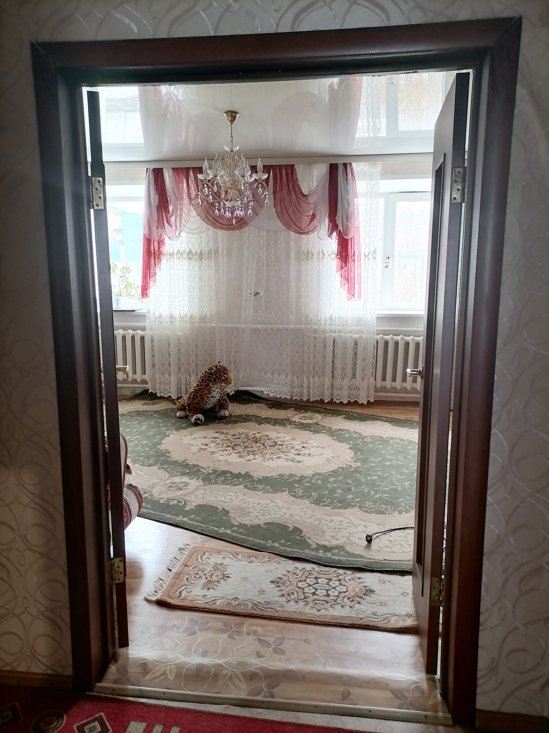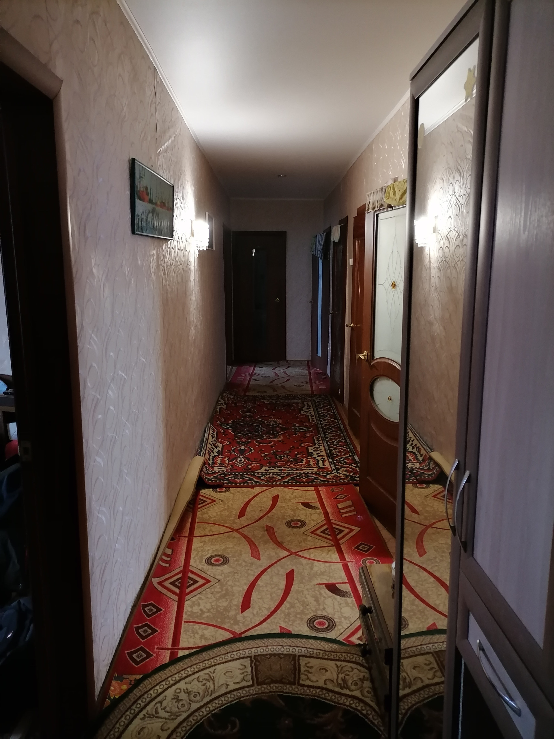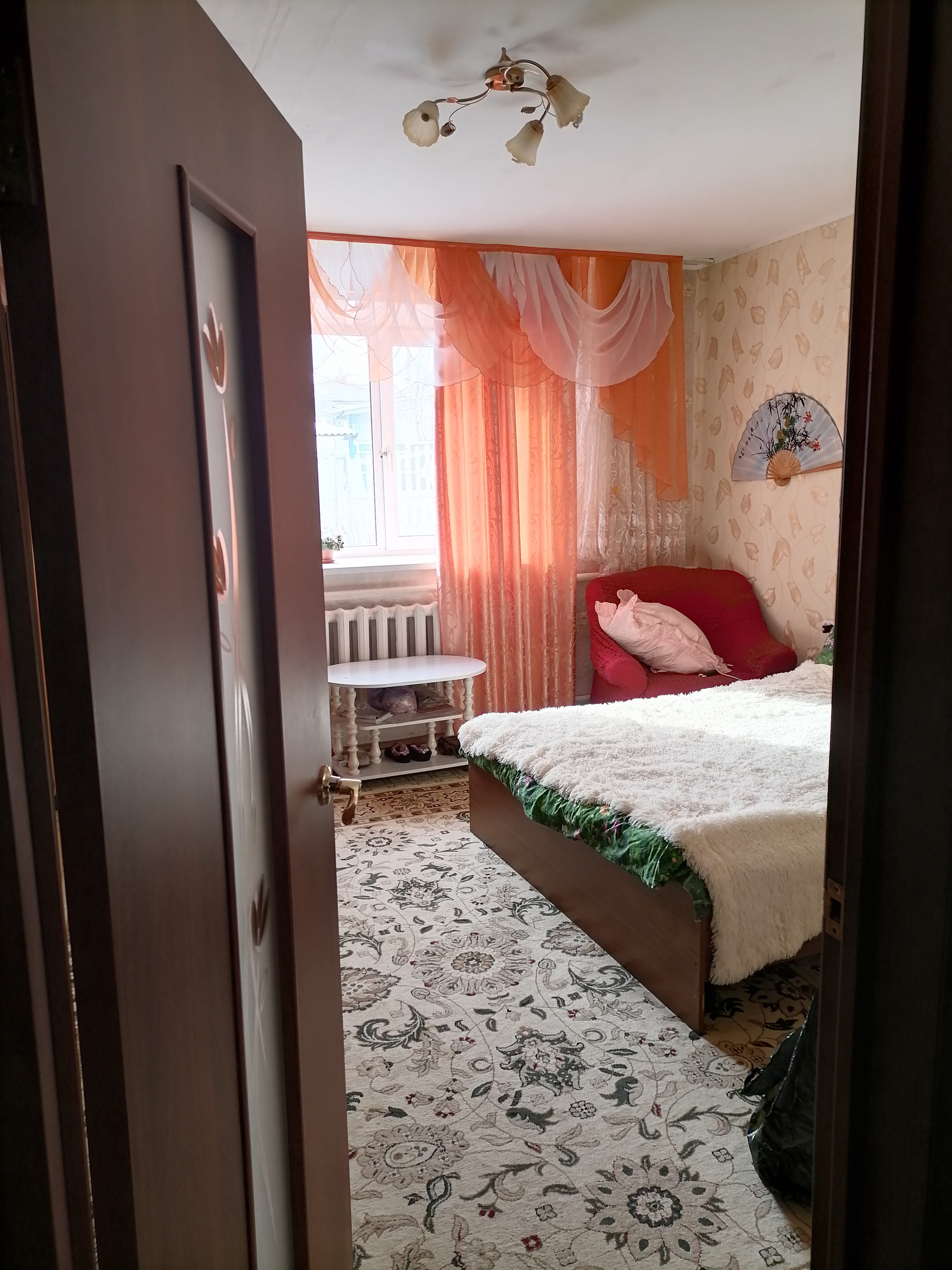Трехкомнатная квартира в одноэтажном, двухквартирном жилом доме, комнаты не смежные, санузел раздельный.