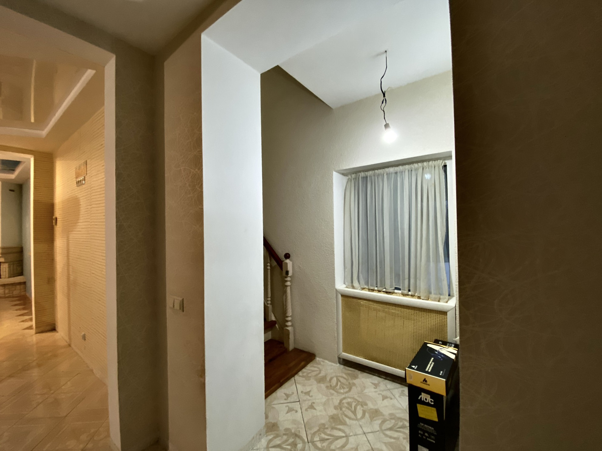 Прихожая, кухня с барной стойкой, гостиная с выходом на участок и настоящим камином, туалетная комната, постирочная.
