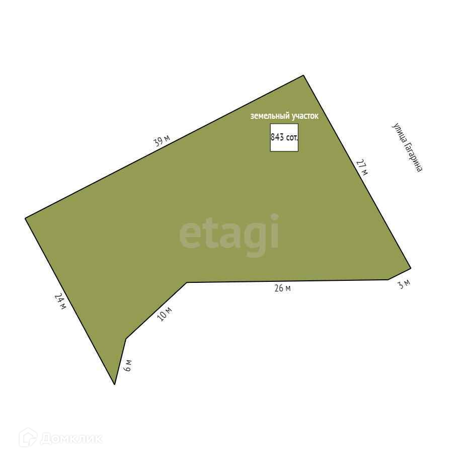 Компания ЭТАЖИ предлагает купить земельный участок площадью 843,00 кв.м.,предназначенный для размещения дома индивидуальной жилой застройки, категория земель:Земли населенных пунктов,расположенной по адресу установлено относительно ориентира расположенного за пределами участка по улице Гагарина.