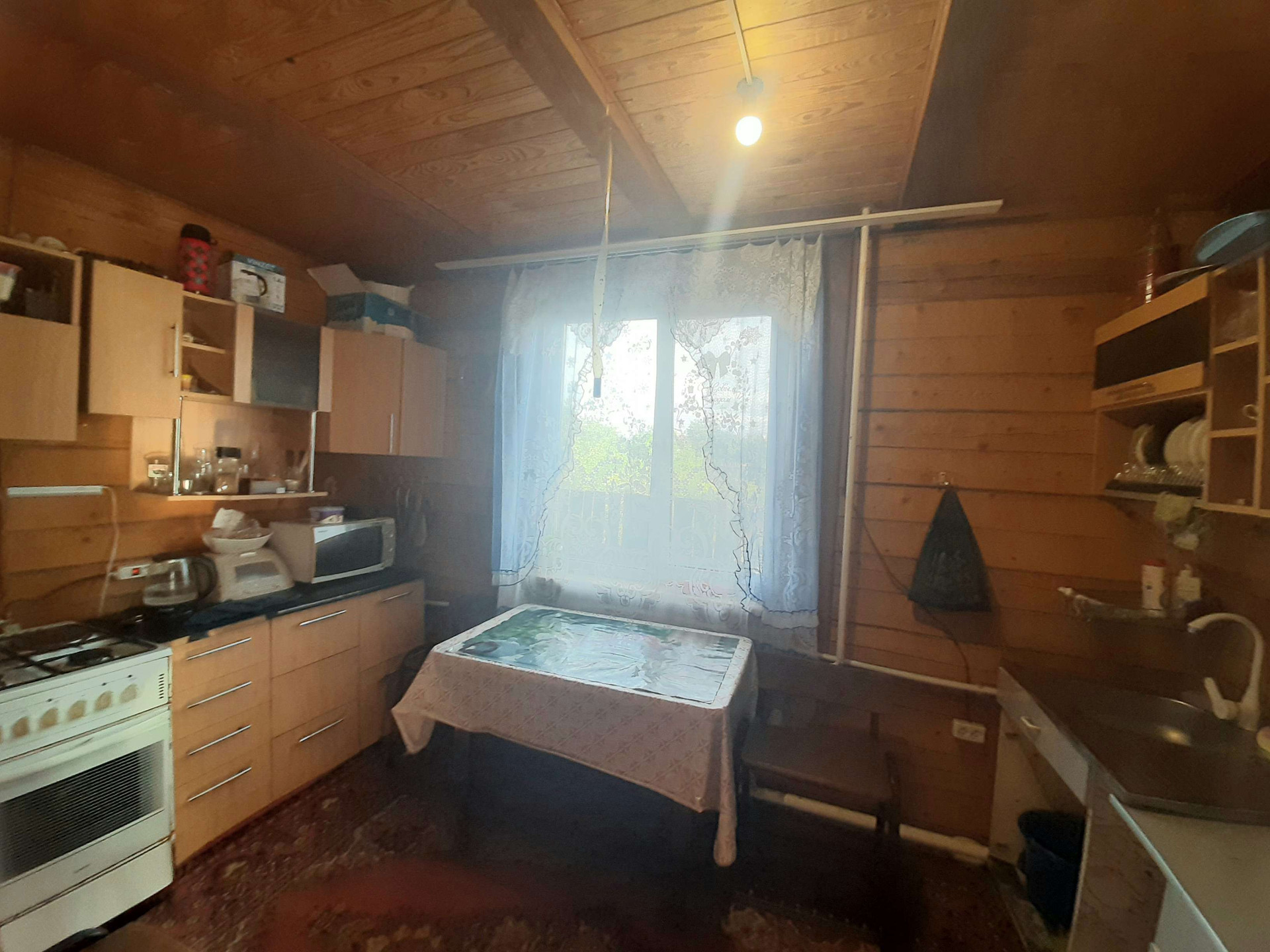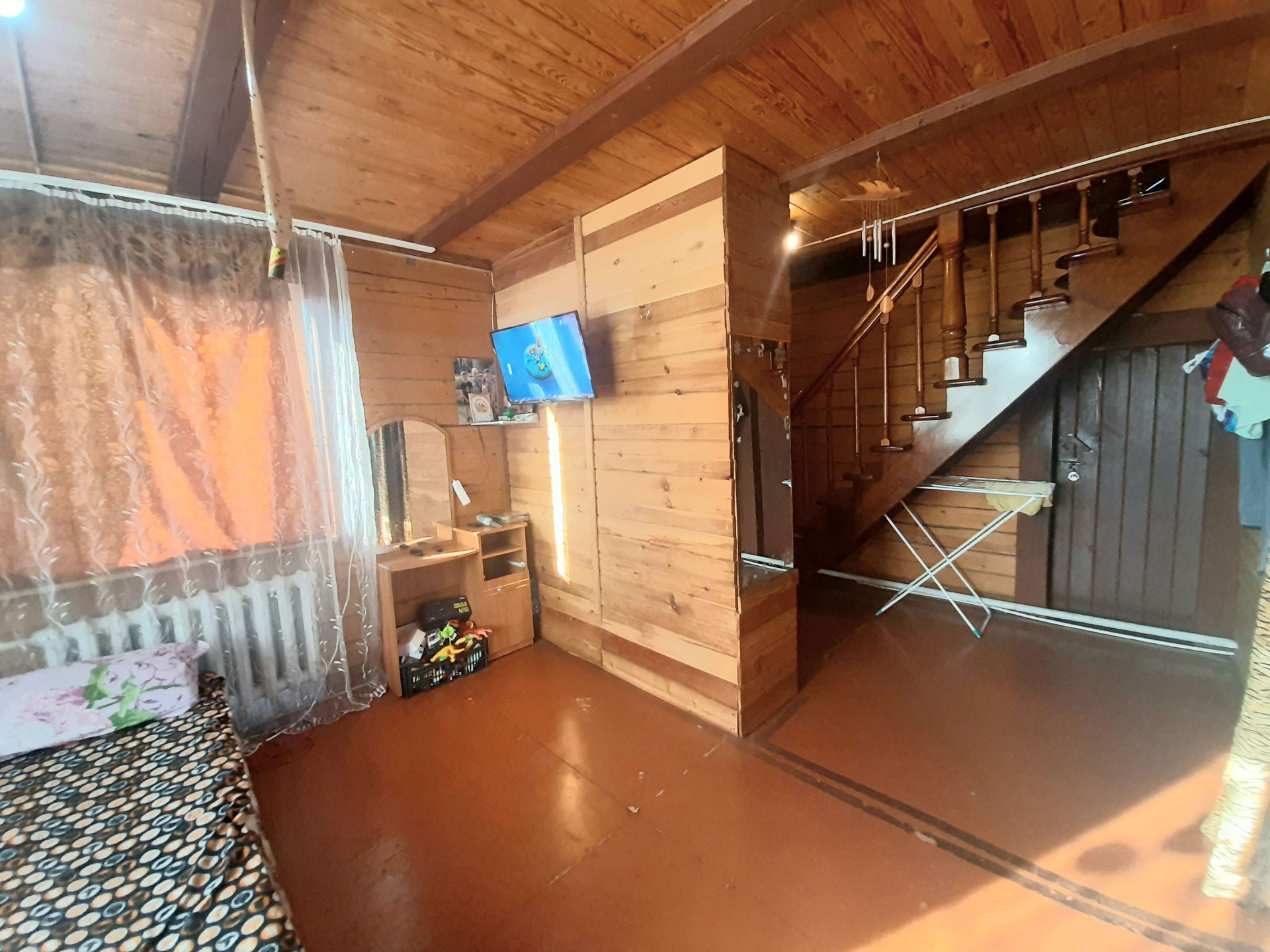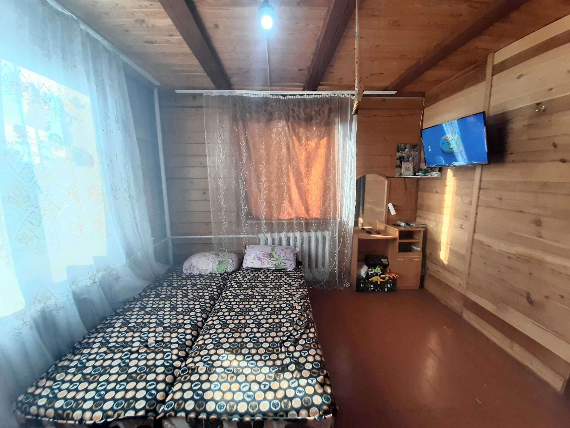 Материал стен дома – брус, на фундаменте, крыша метало-черепица. Отопление - котел длительно горения с элетро, дом очень теплый! Холодная и горячая вода в доме! В доме есть санузел!
