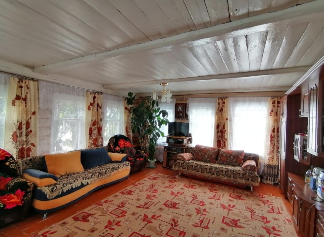 Общая площадь дома 76 кв.м( просторный зал, спальня, кухня) так же имеется холодное помещение и котельная. В доме остается полностью вся мебель. На ровном участке 33 сот. расположены баня(на дровах) и хоз.постройки. В саду плодово-ягодные насаждения(малина, яблони, сливы, смородина).