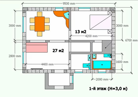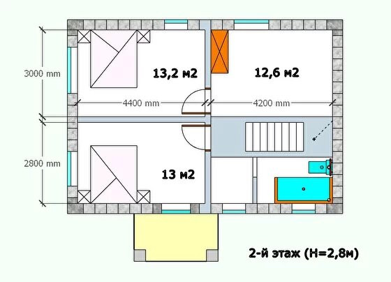 Планировка дома может включать в себя от 2 до 4 спальных комнат.