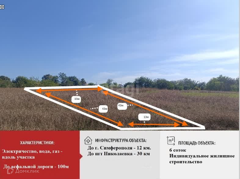 Вдоль участка централизованная вода и электричество, газ по улице. До трассы Таврида 3км, до города Симферополь 5км, до центра 10км. Автодорога недавно отремонтирована, не загружена, самый удобный и без пробок въезд в город!