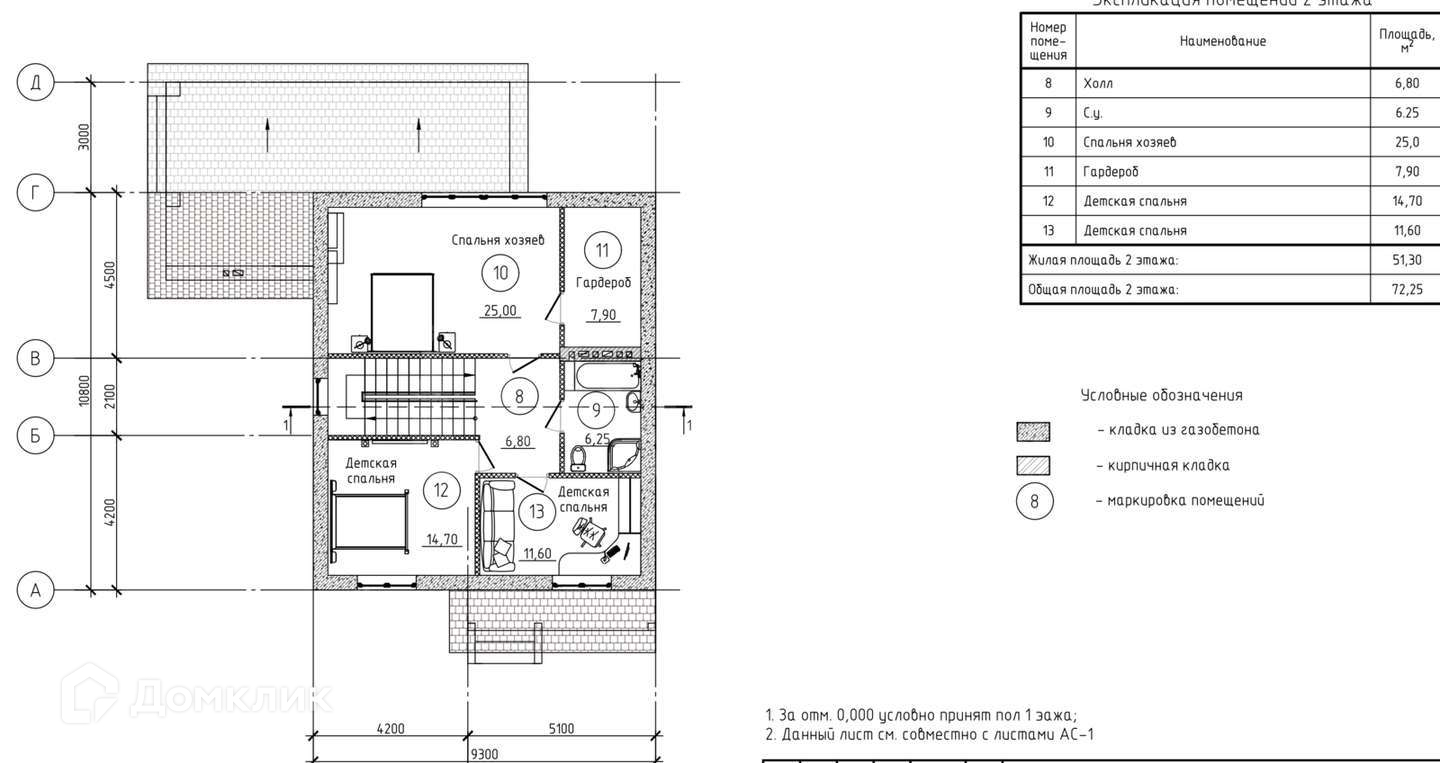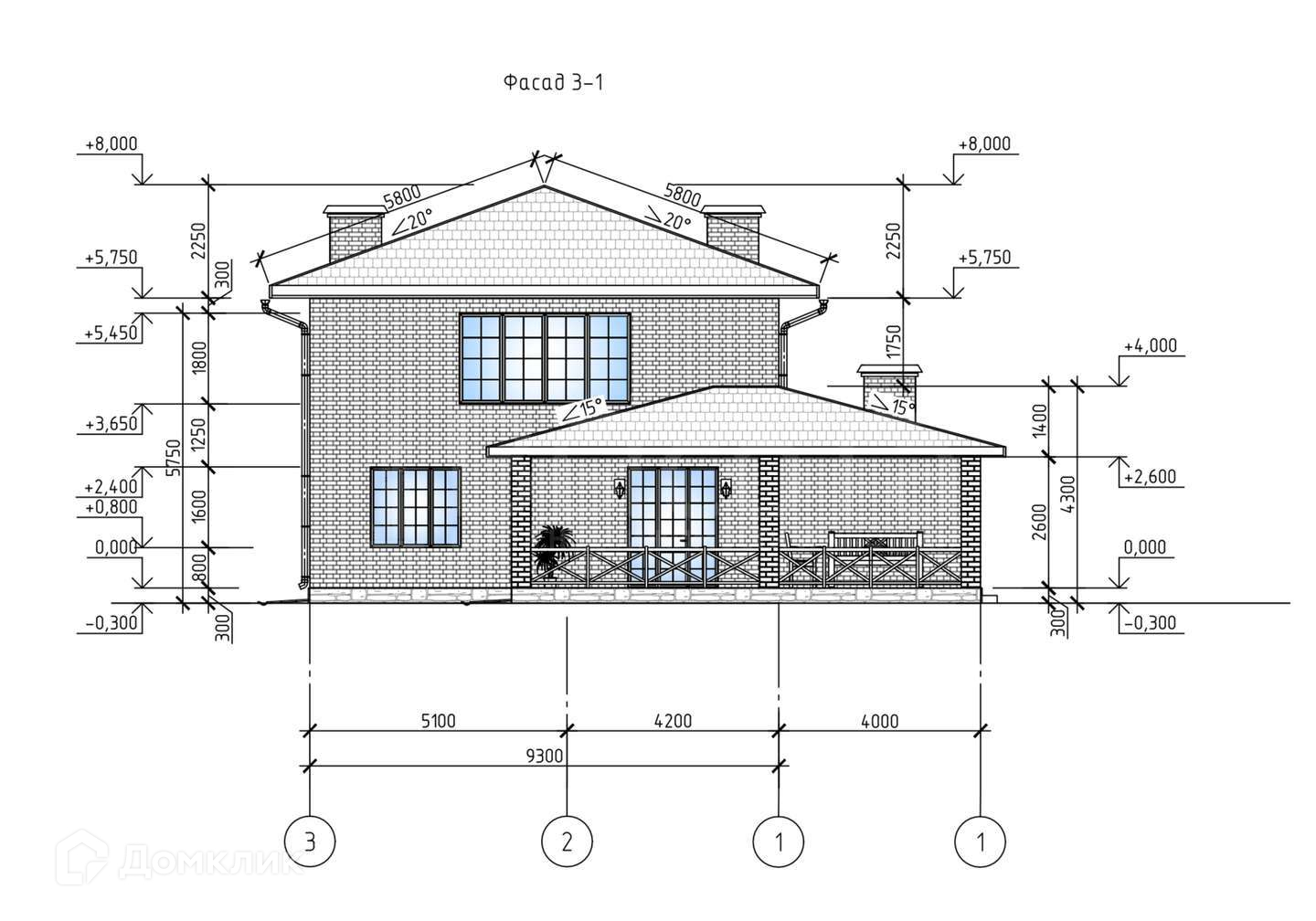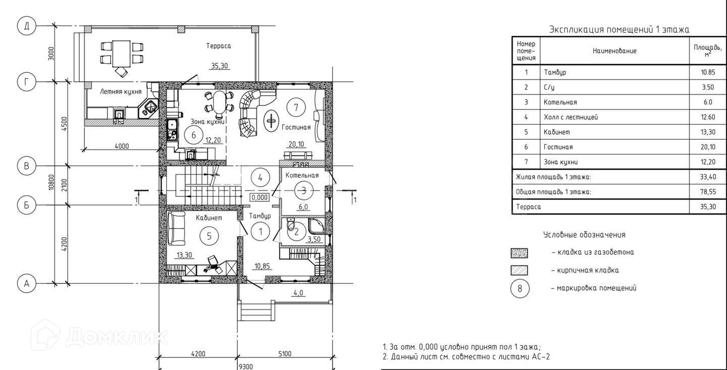 Стены: Газоблок ширина 400, Облицовочный кирпич.