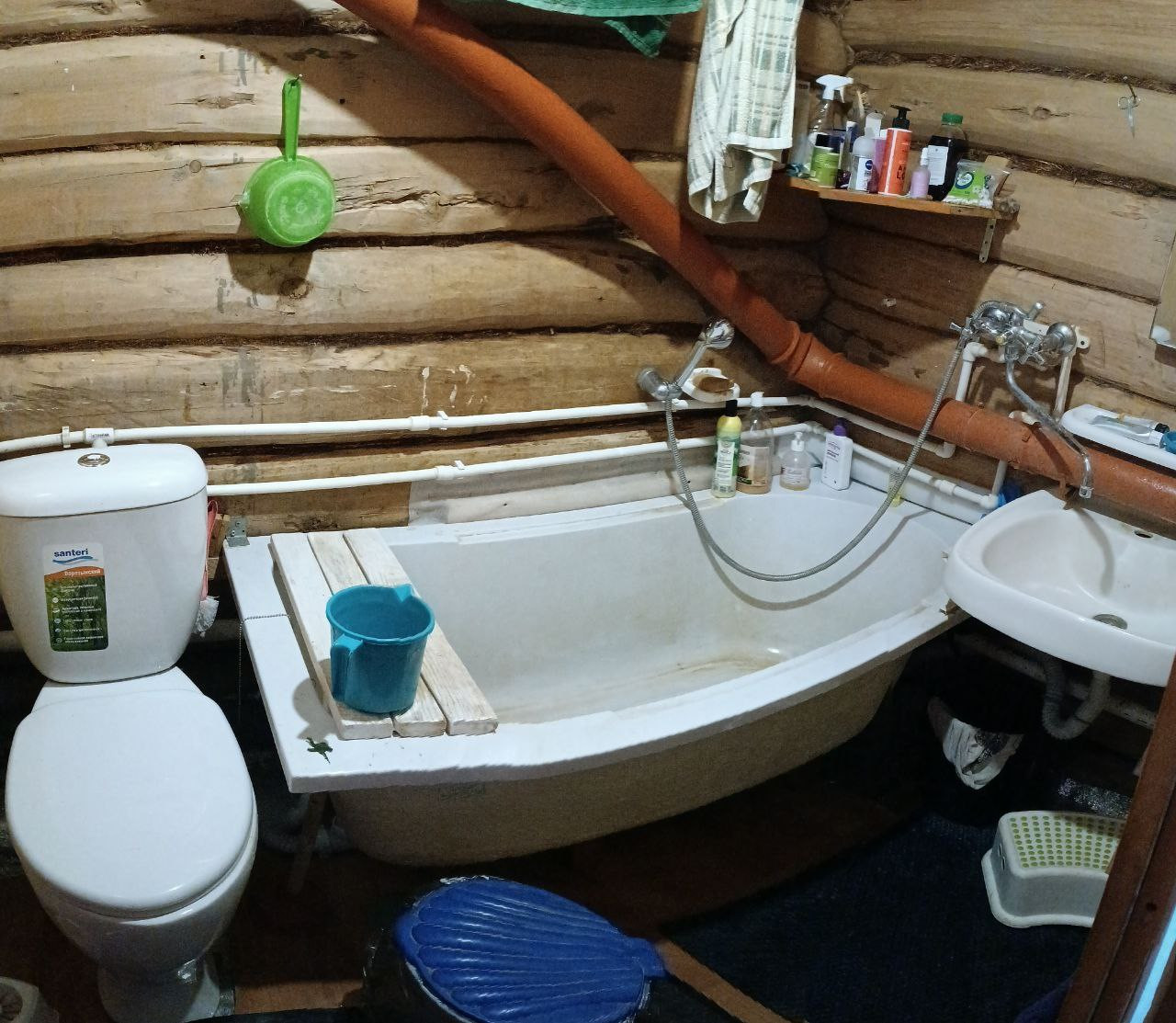 В дoме есть ванная и унитаз, канализация.