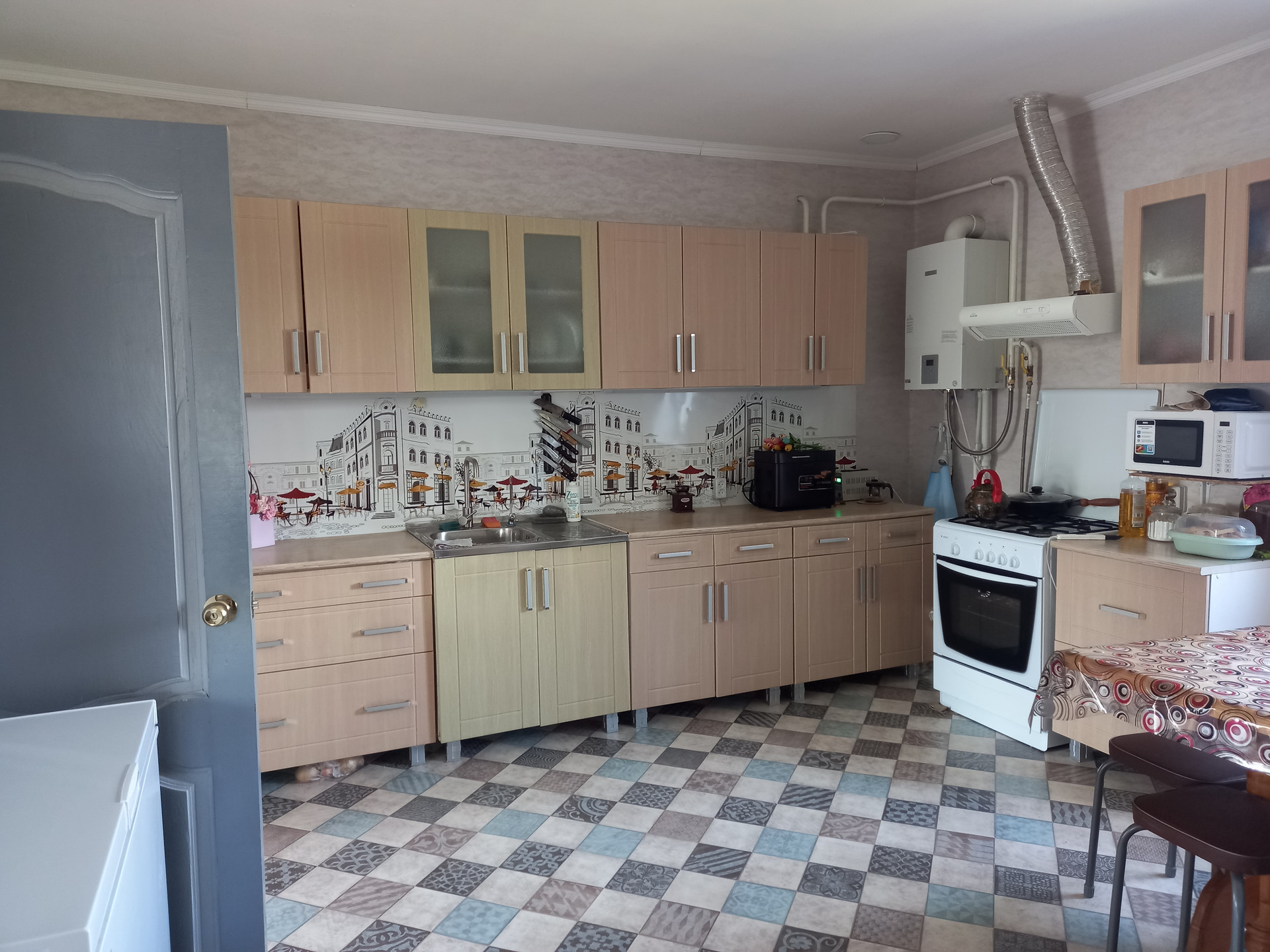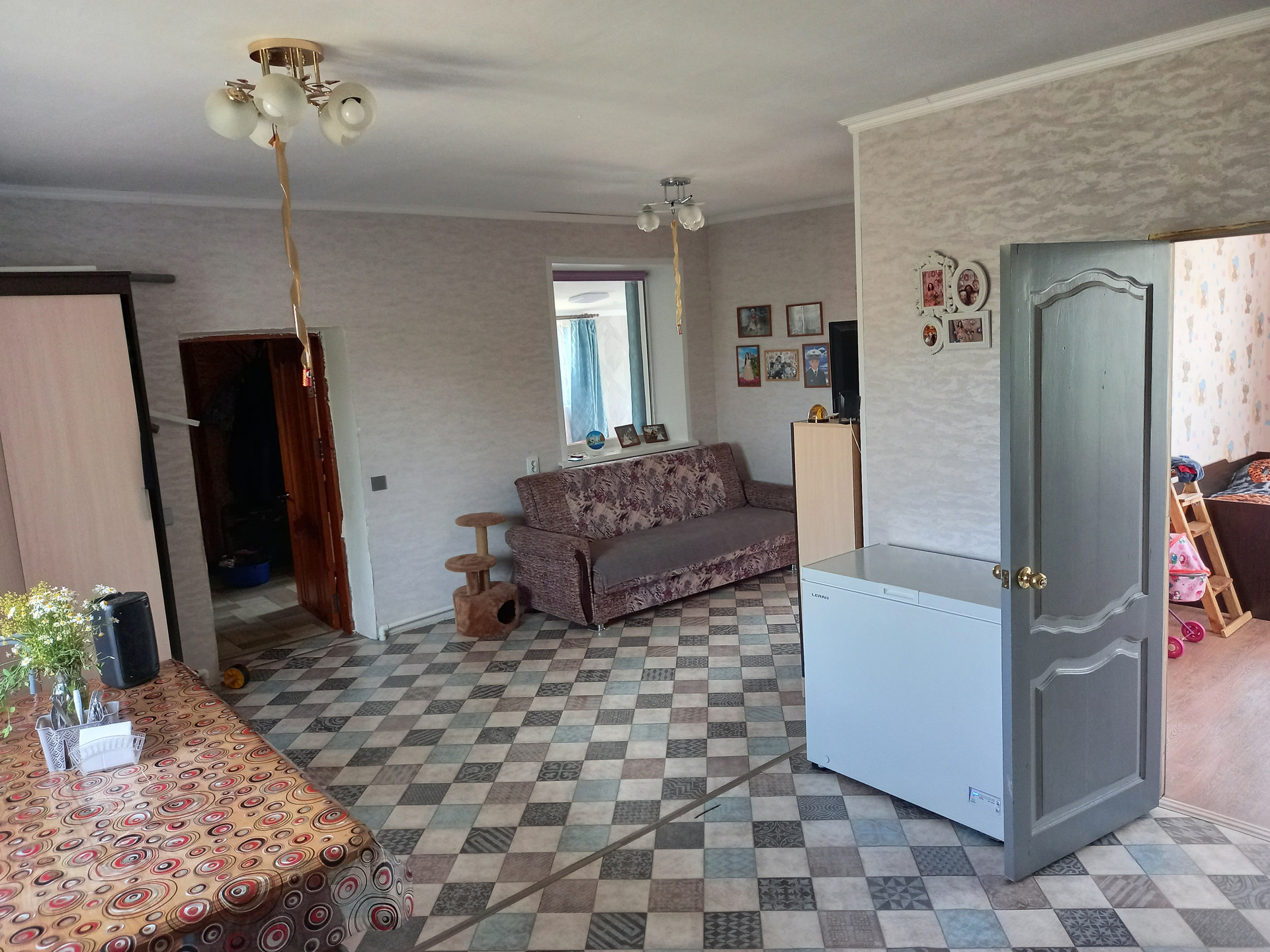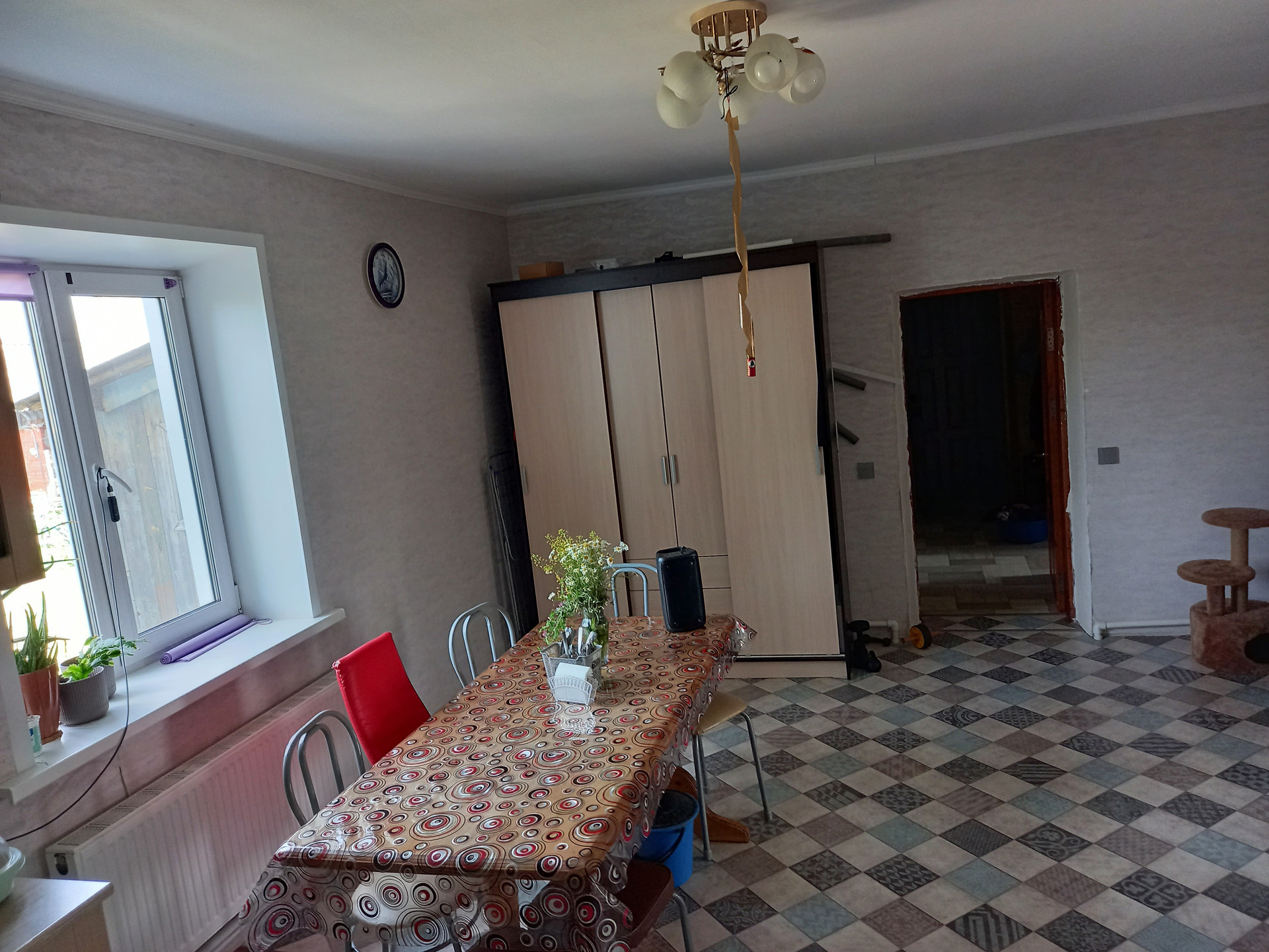 Дом в хорошем состоянии, сделан капитальный ремонт. Установлен видеодомофон. Мебель остаётся (что-то куплено несколько месяцев назад, что-то 1 -1,5 года назад). В ванной и в прихожей тёплый электрический пол. Отопление газовое: новый настенный котёл. Вода в доме из нового колодца, обогреватели воды электрические. Есть второй колодец для огорода. Канализация- септик. Плодородная земля. Есть все насаждения: 7 сортов винограда, яблони, груши, вишня, смородина, жимолости и другие плодовые кусты и деревья. В деревне есть дет. садик, школа, дом культуры, фап, магазины, родники. Соседи далеко, простор.
