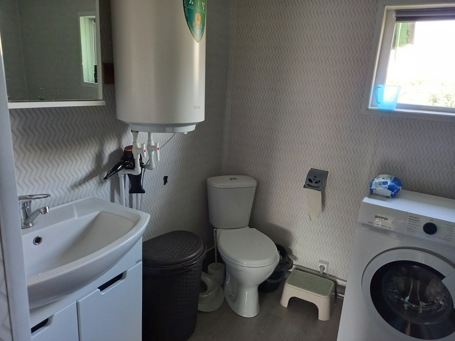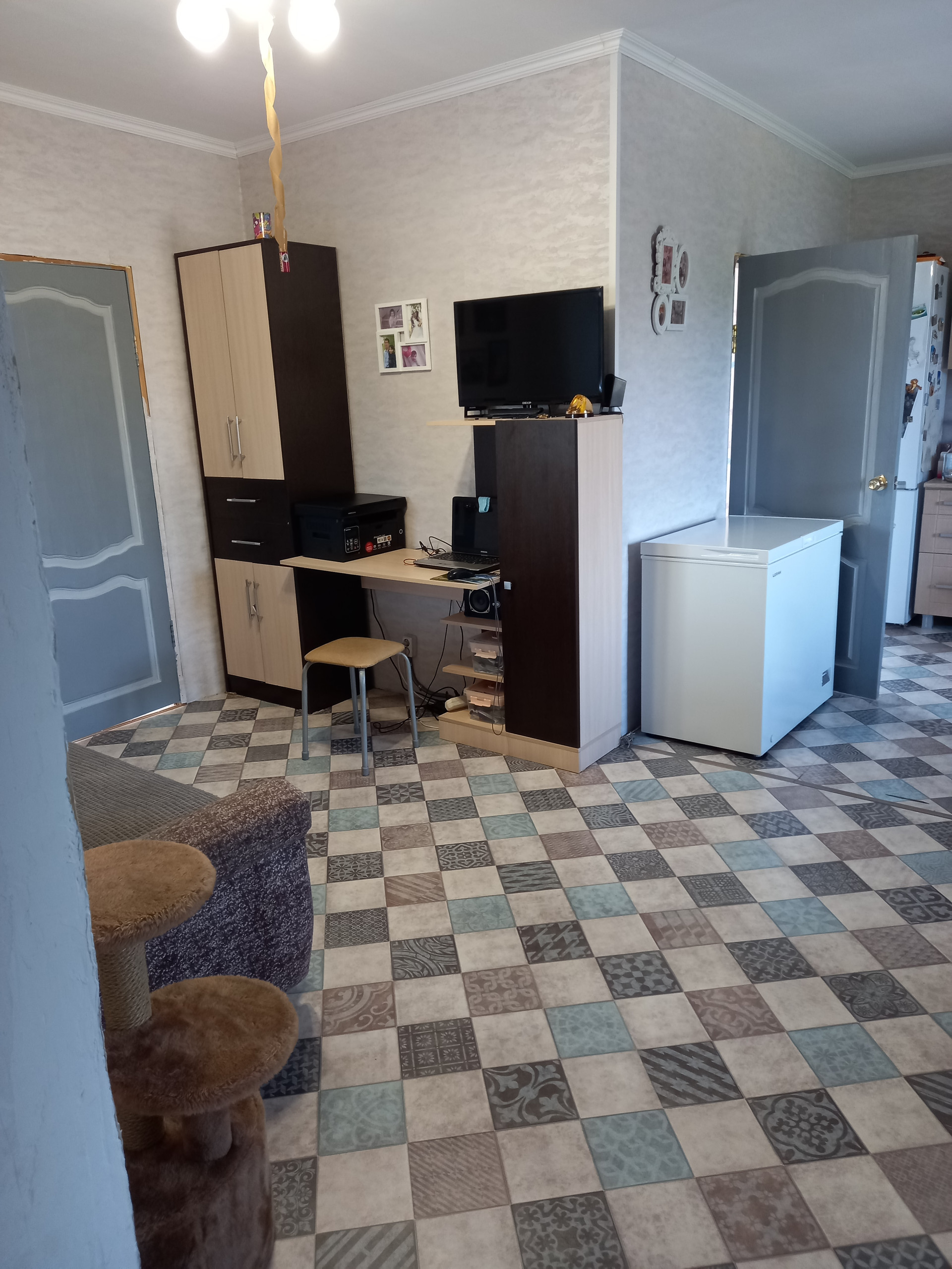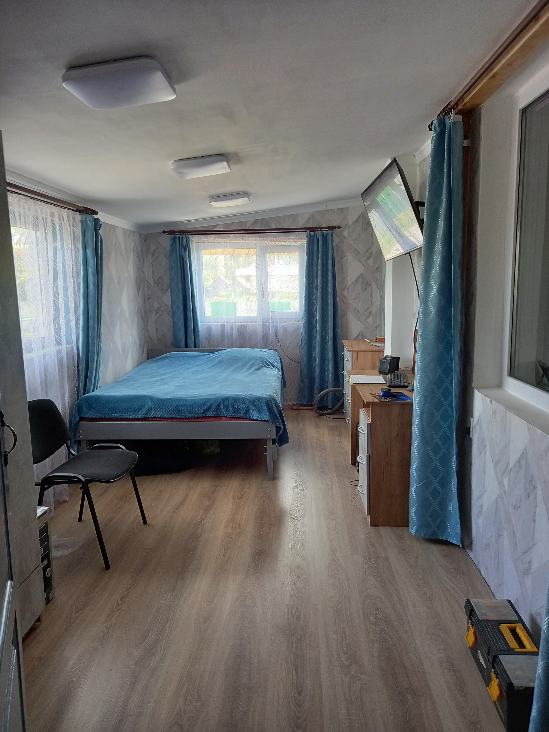 Дом в хорошем состоянии, сделан капитальный ремонт. Установлен видеодомофон. Мебель остаётся (что-то куплено несколько месяцев назад, что-то 1 -1,5 года назад). В ванной и в прихожей тёплый электрический пол. Отопление газовое: новый настенный котёл. Вода в доме из нового колодца, обогреватели воды электрические. Есть второй колодец для огорода. Канализация- септик. Плодородная земля. Есть все насаждения: 7 сортов винограда, яблони, груши, вишня, смородина, жимолости и другие плодовые кусты и деревья. В деревне есть дет. садик, школа, дом культуры, фап, магазины, родники. Соседи далеко, простор.