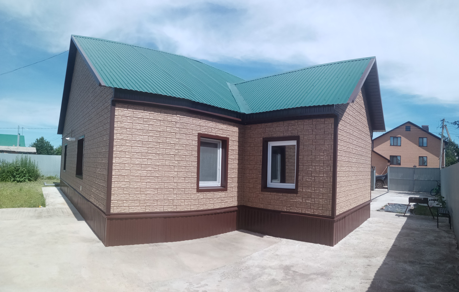 Крыша современная, покрыта сайдингом.