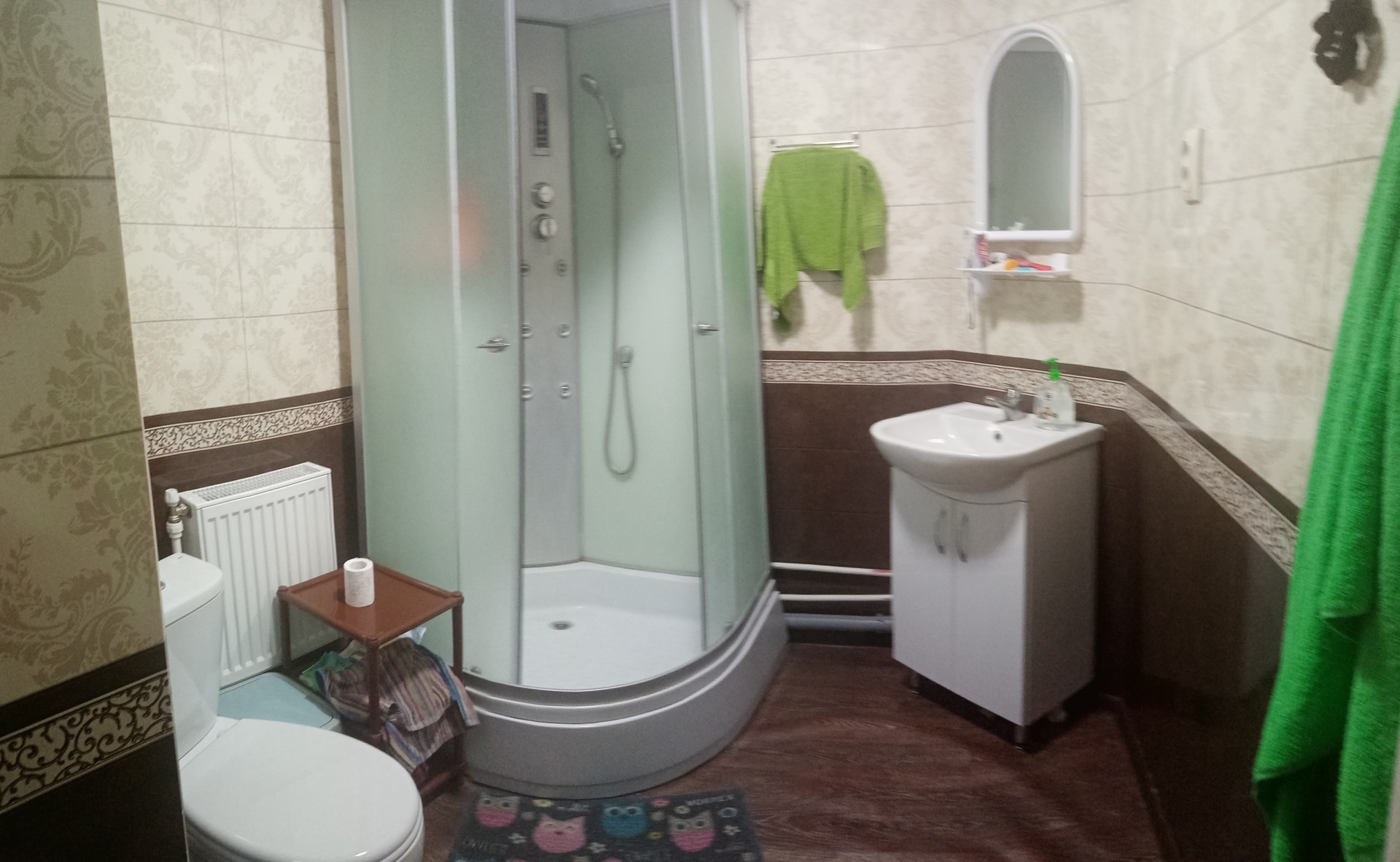 В санузле душевая кабина и унитаз.