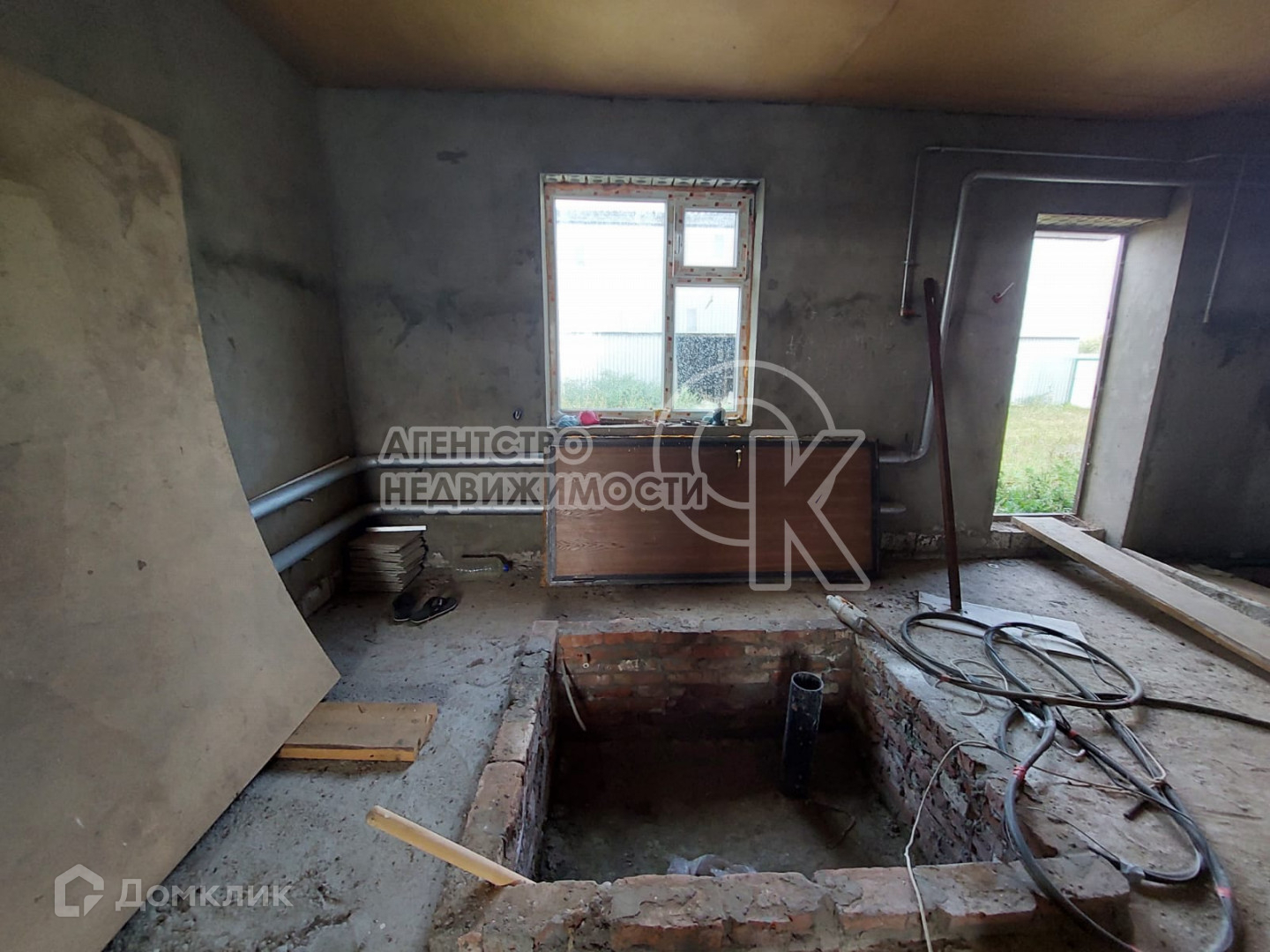 Дом построен из кирпича: все коммуникации подведены: вода (скважина), газ (проведен, установлен счетчик), свет.