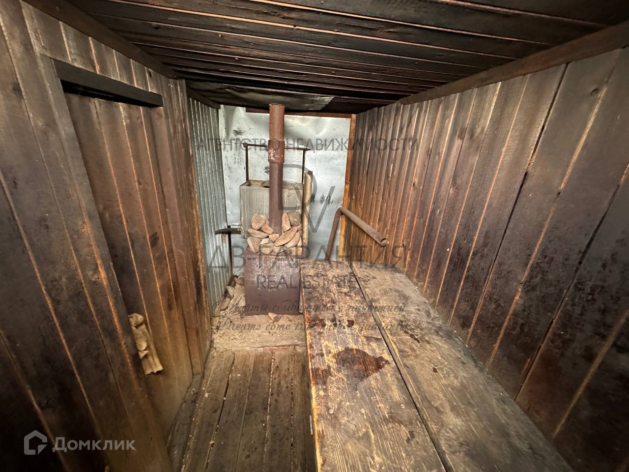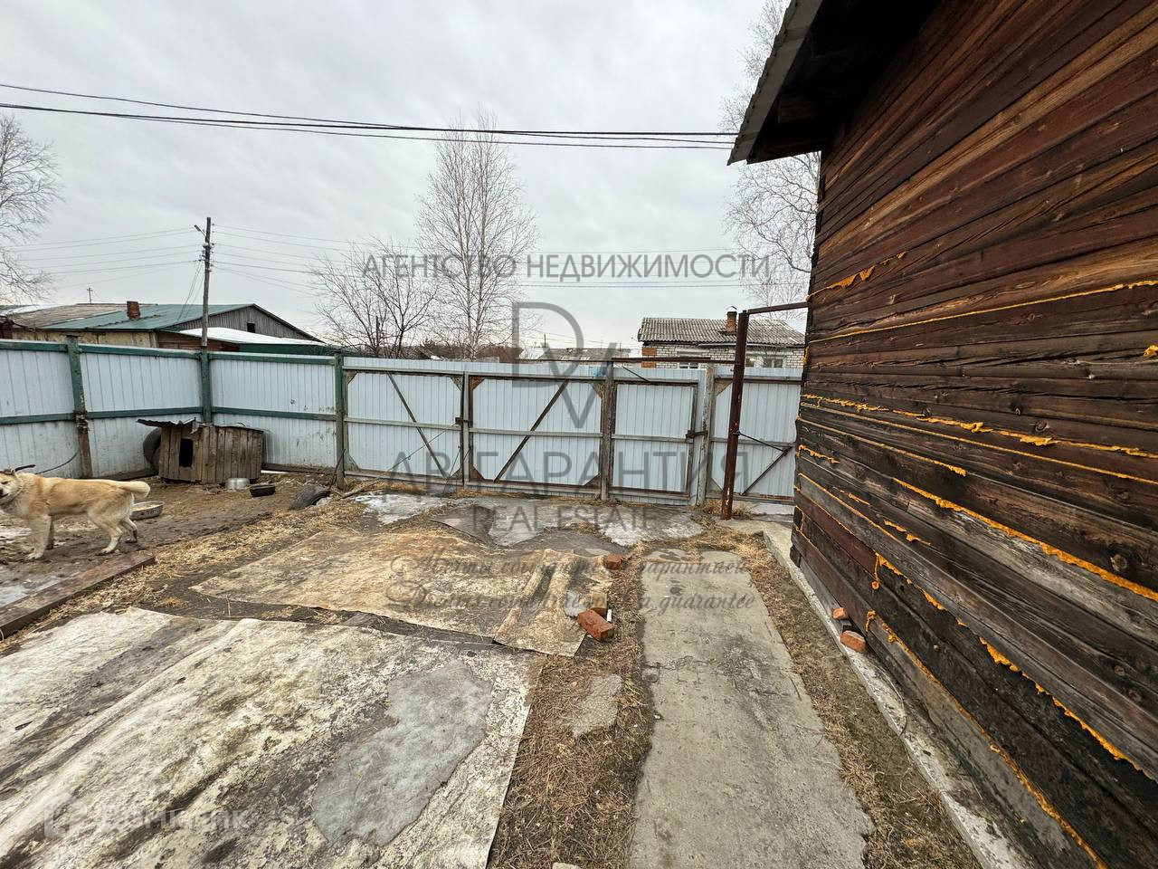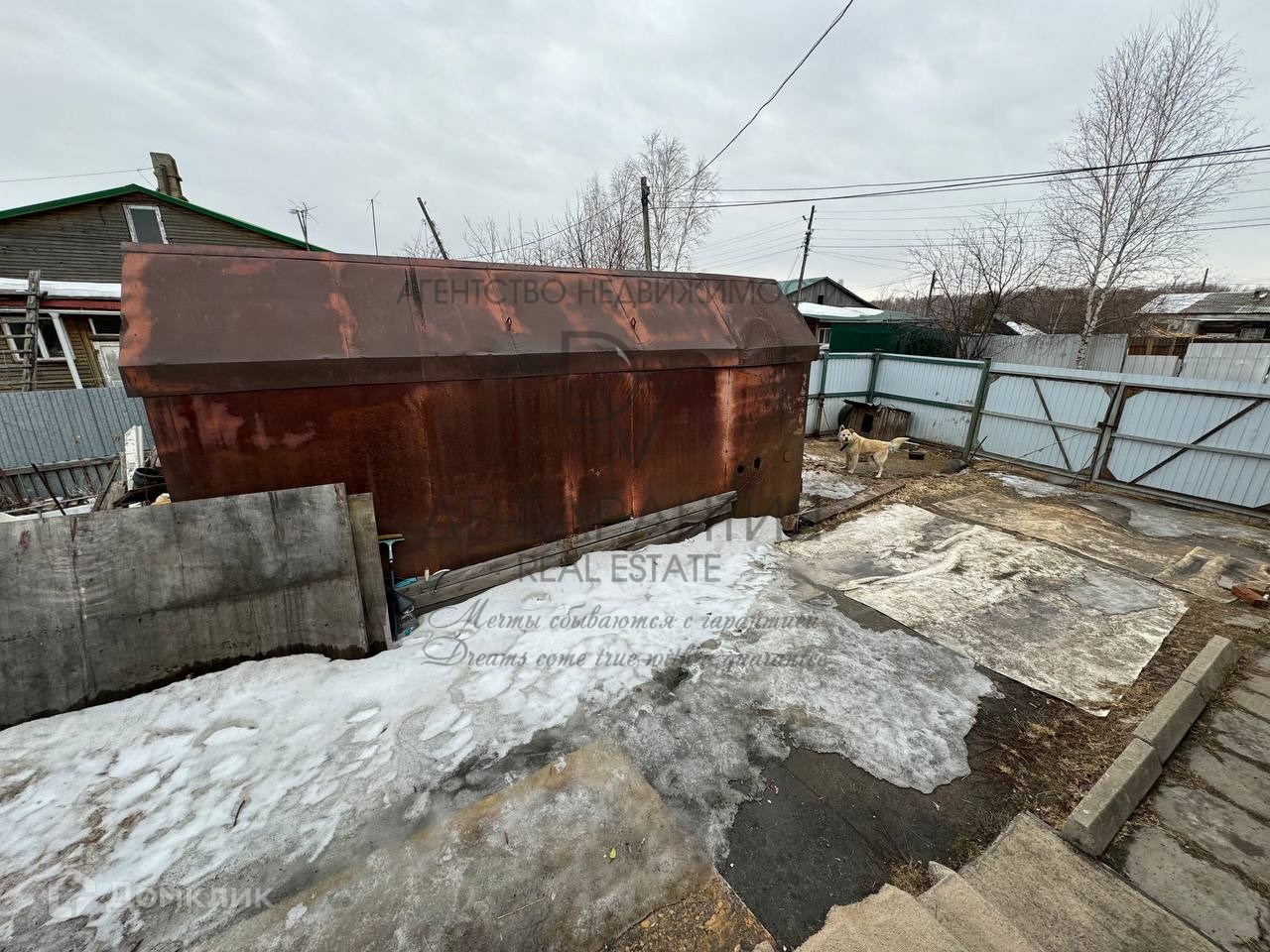 На котором имеются металлический гараж, баня и сарай для домашнего скота