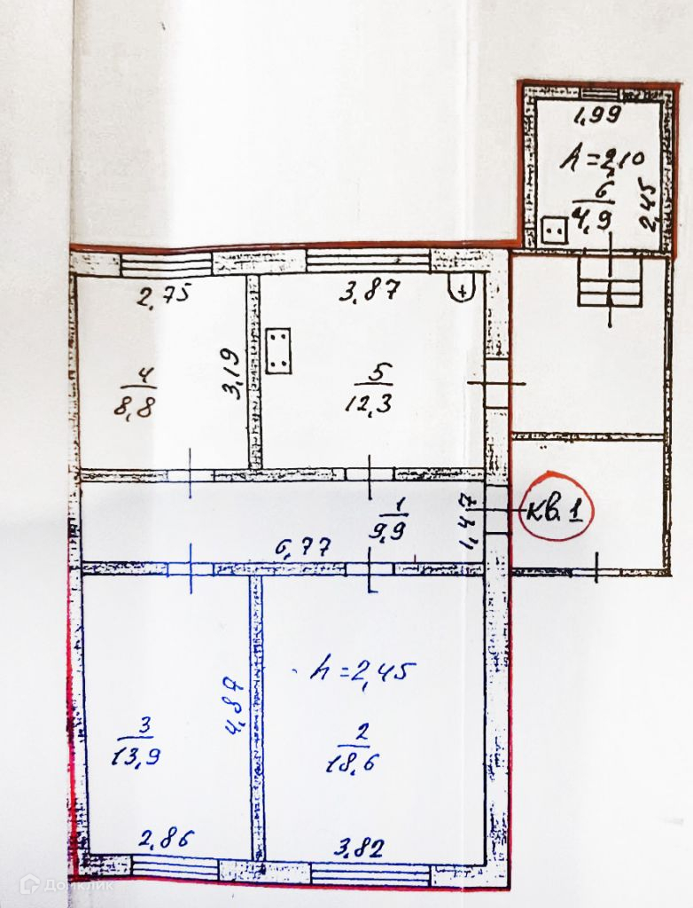Жилая площадь 41.3 м2