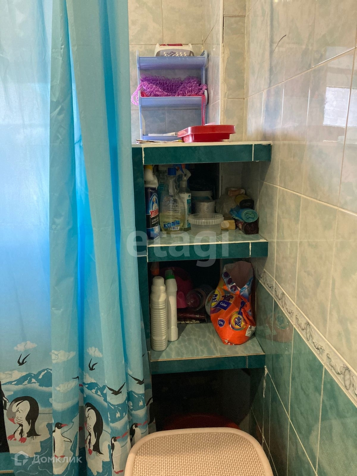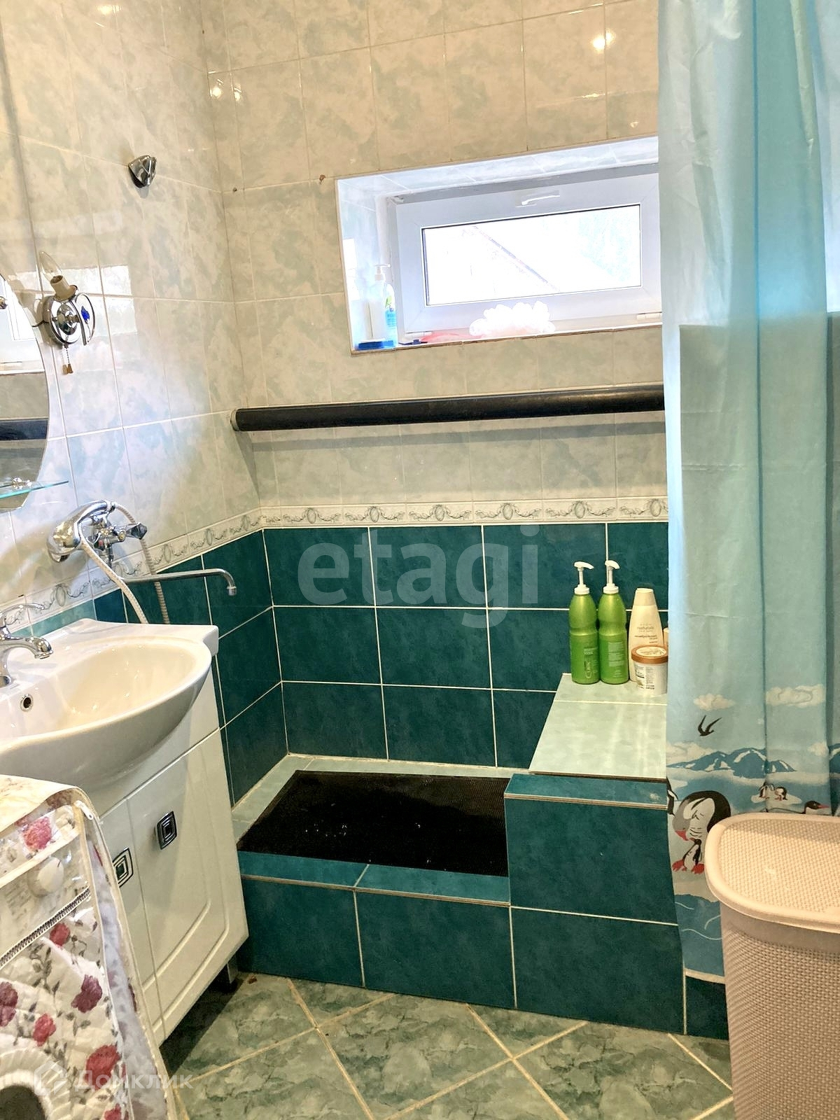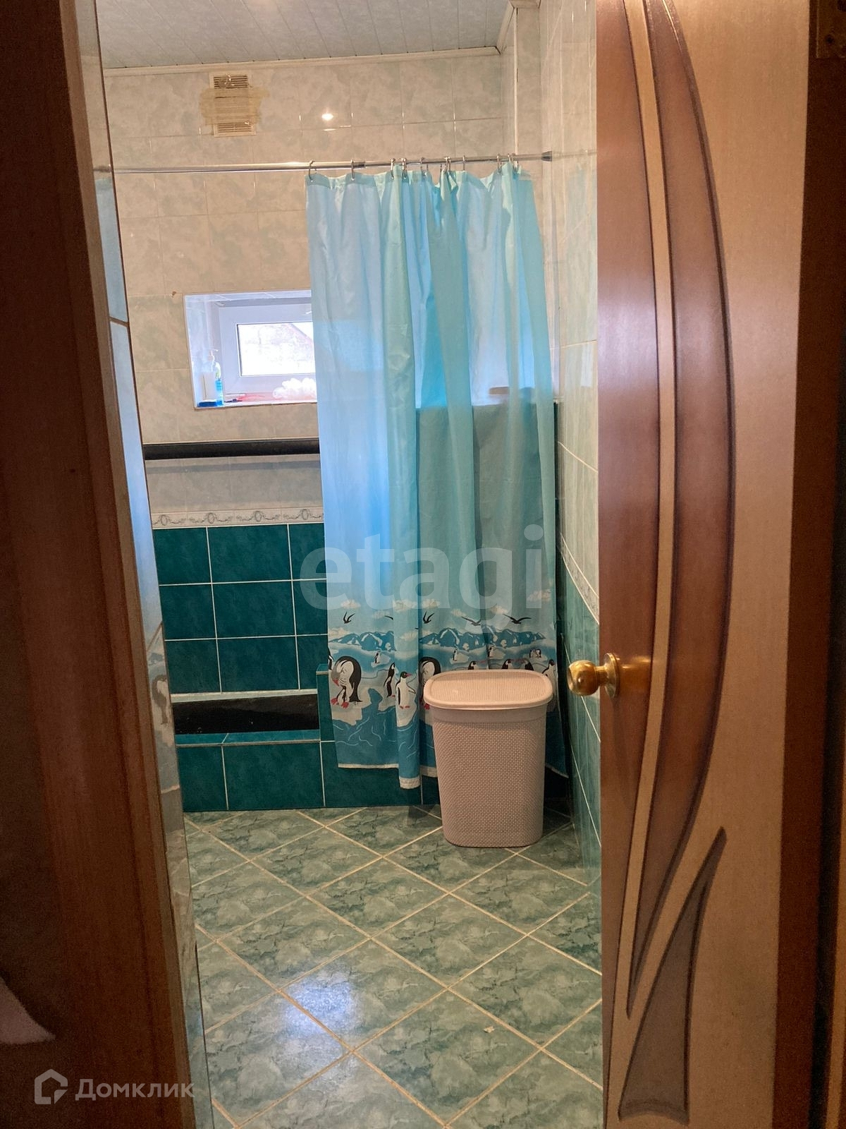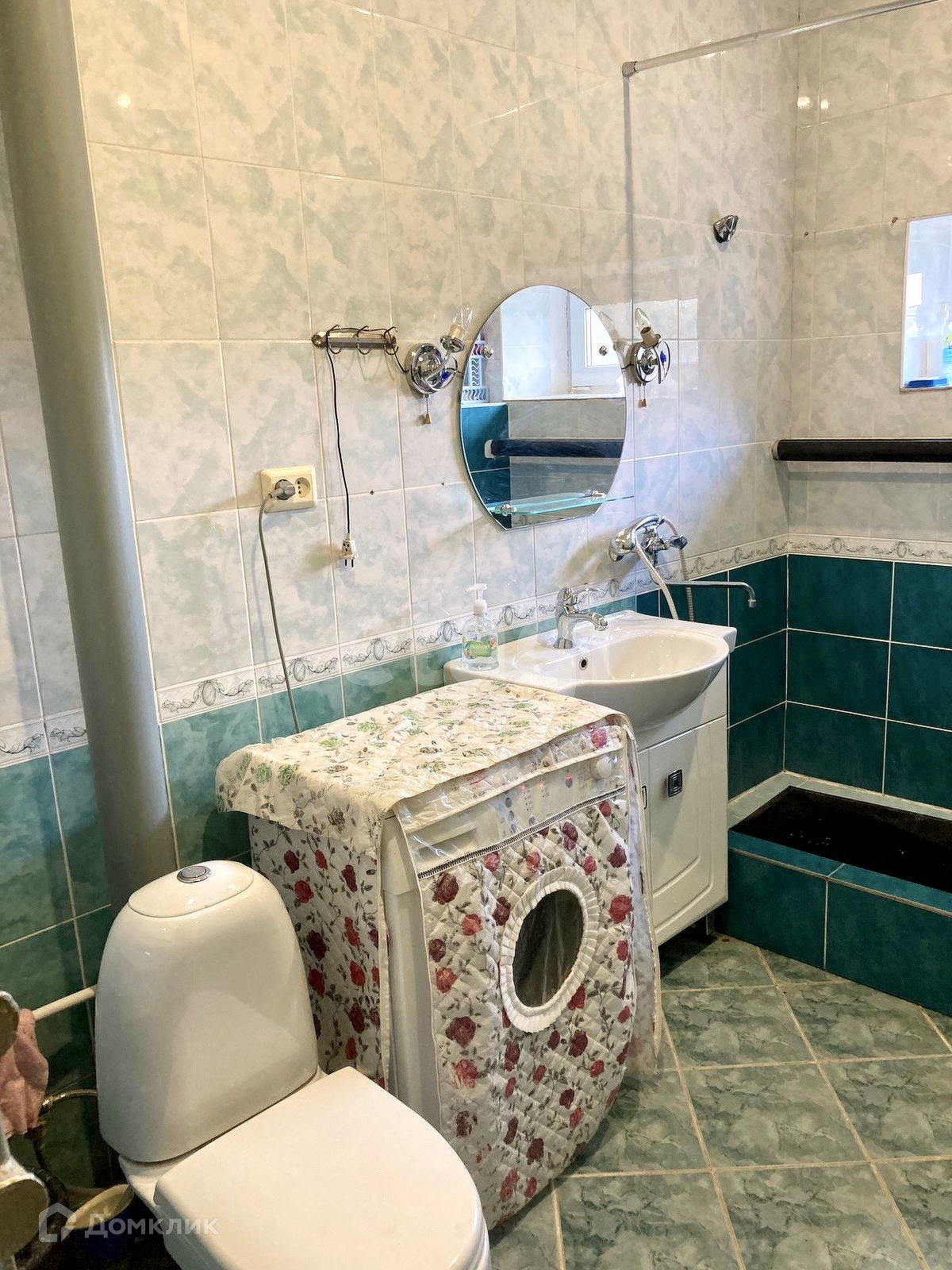 Санузел на 1 этаже совместный, на полу и стенах выложен кафельной плиткой.