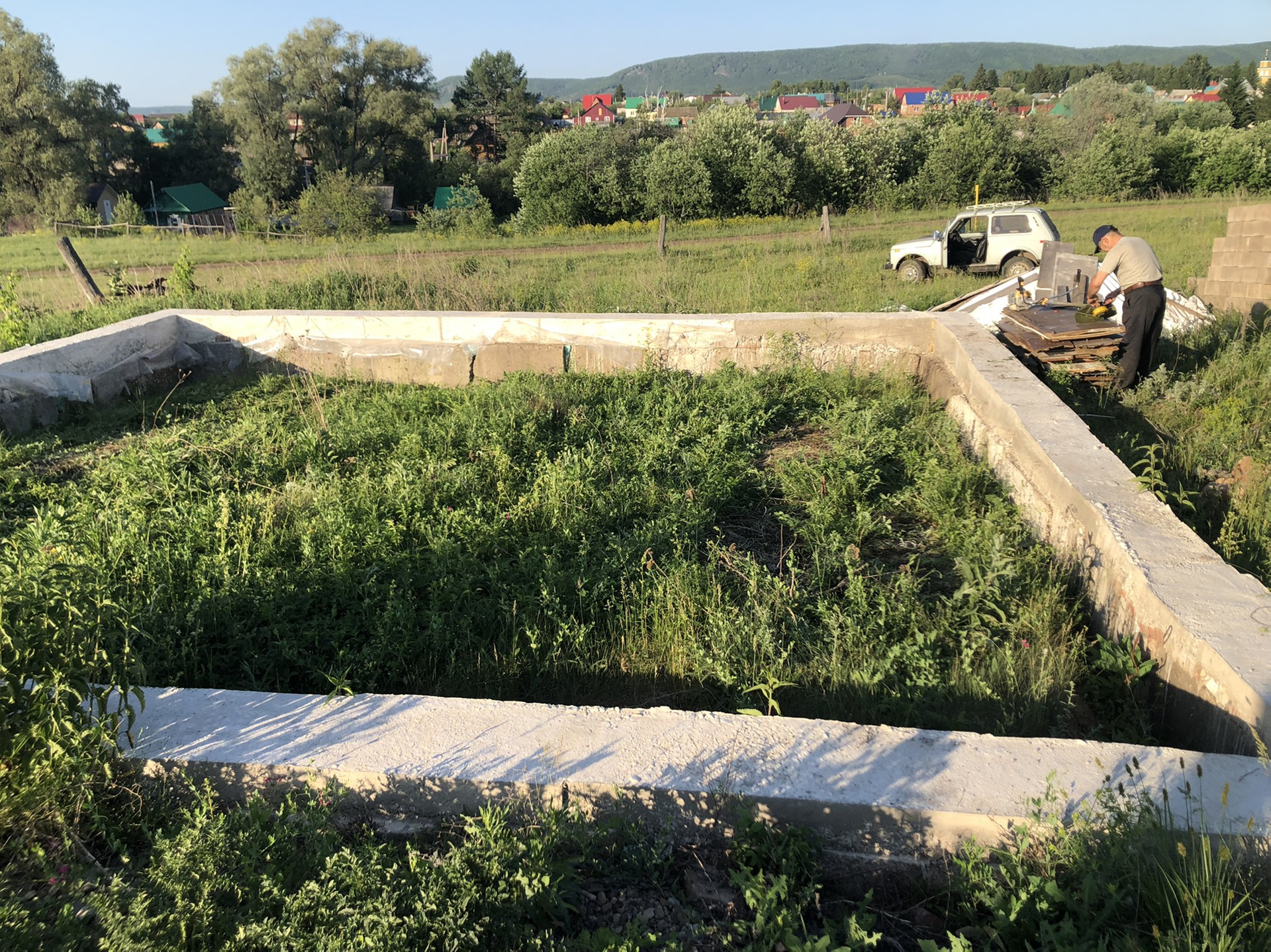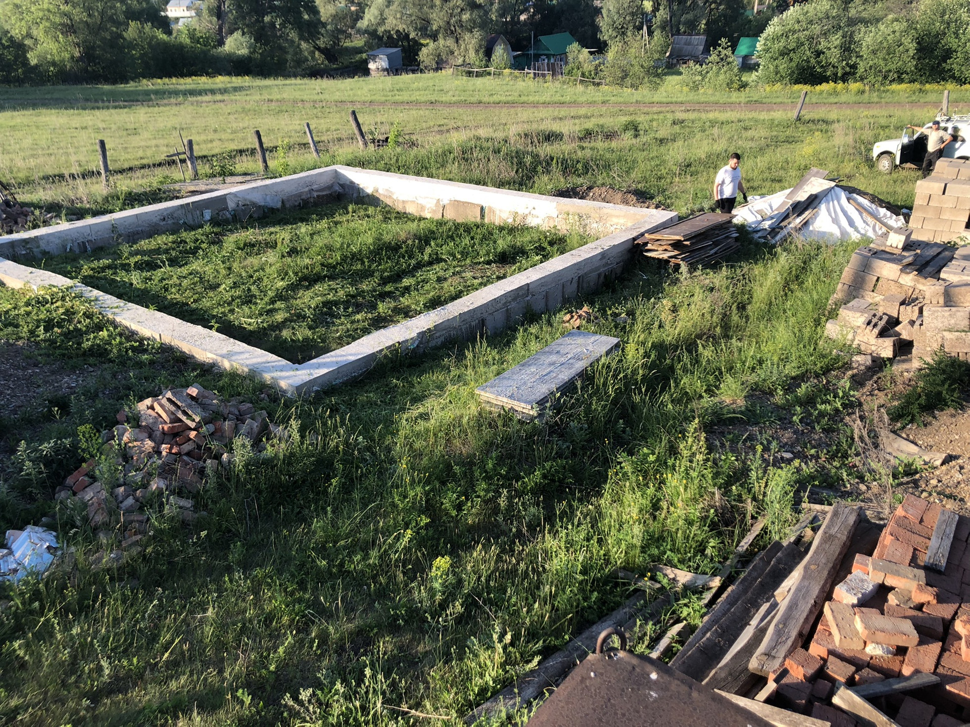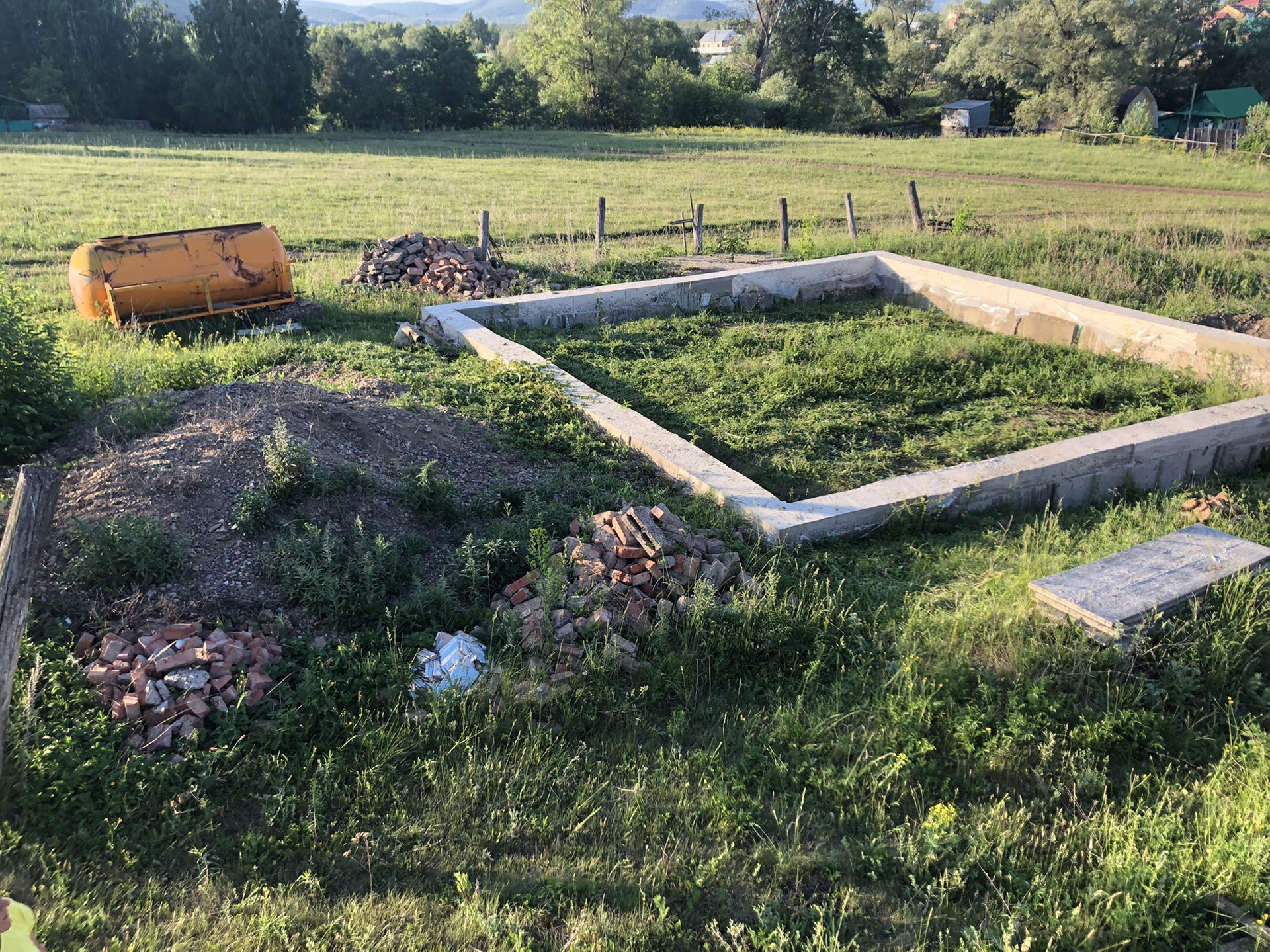 Участок под строительство жилого дома. На участке имеется залитый фундамент из ФБС блоков в 2 ряда ,  имеется шлакоблок,Мелеузовский кирпич, песок для кладки 12 тонн,4 плиты ПКТ, 380/220 вольт счётчик, так же счётчиком холодной воды. Размер фундамента 9.20 на 9.20, внутренний размер 8.60 на 8,60,  ширина 40 см.