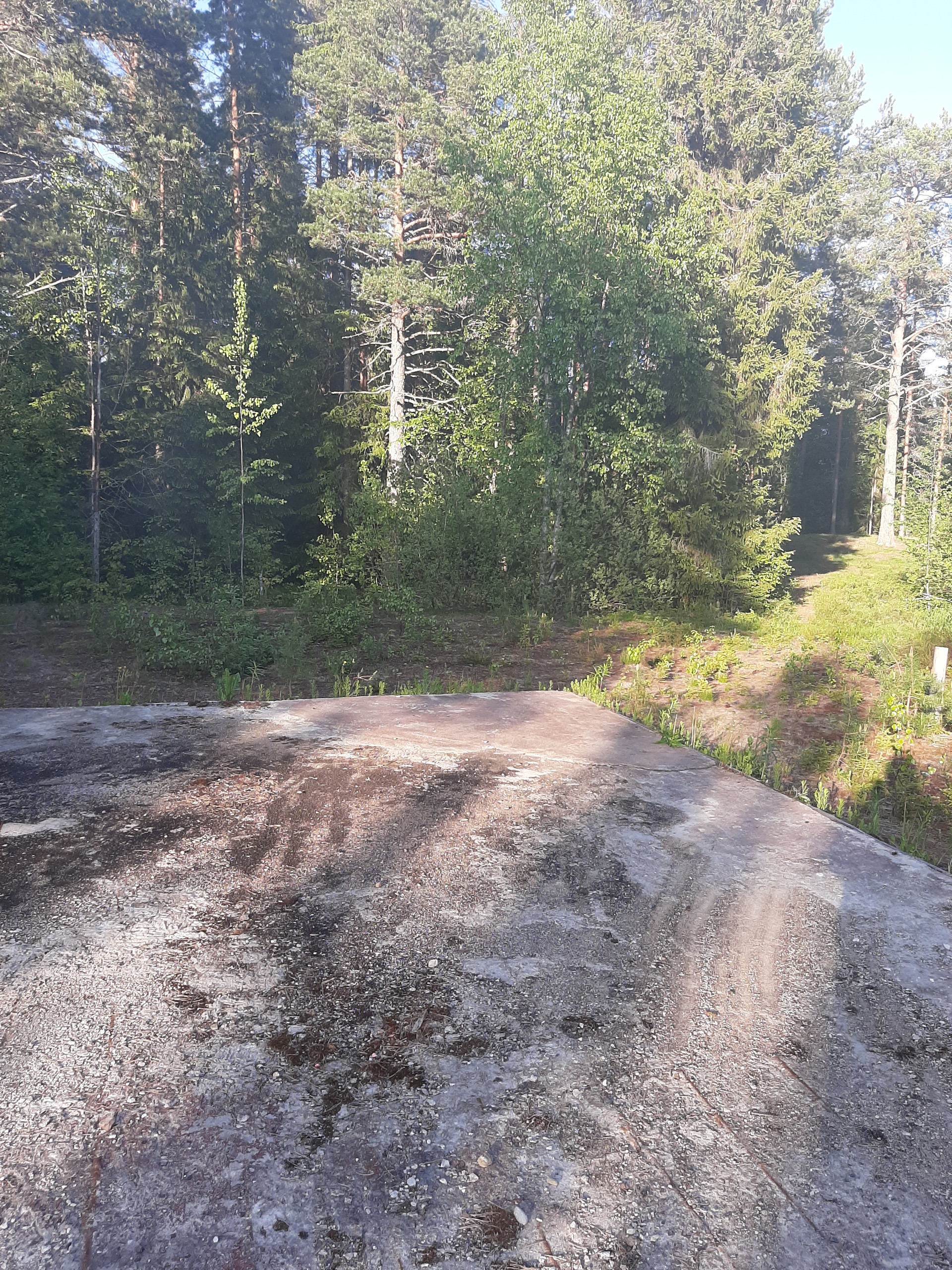 Участок находится в лесу с отдельной подъездной дорогой 150-200 метров протяжённостью, так же есть проход к реке (через  соседей). До реки Олонка 100 метров, до Ладоги 500метров. На участке расположен фундамент 12 на 13 ,толщиной 35 см., плита в которой находится 3 км. арматуры , подведено электричество, выведена разводка канализации, есть скважина с технической водой. Документы готовы, звоните в любое время.