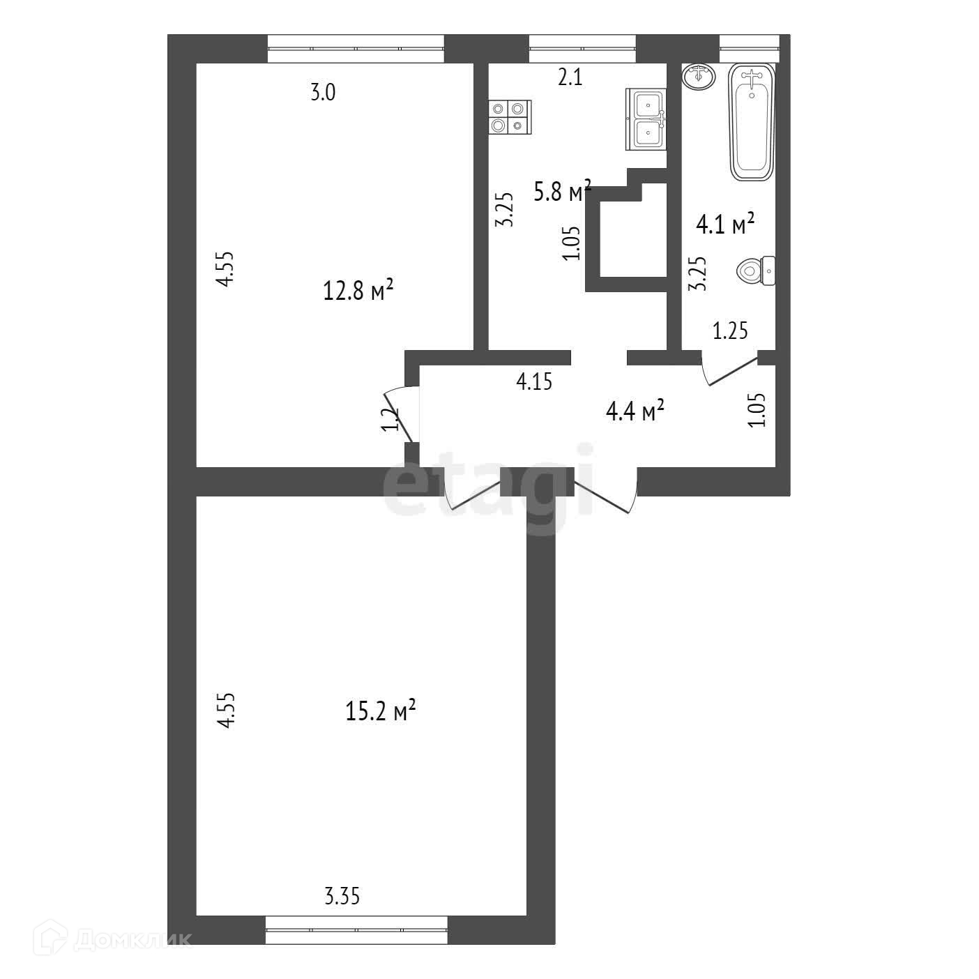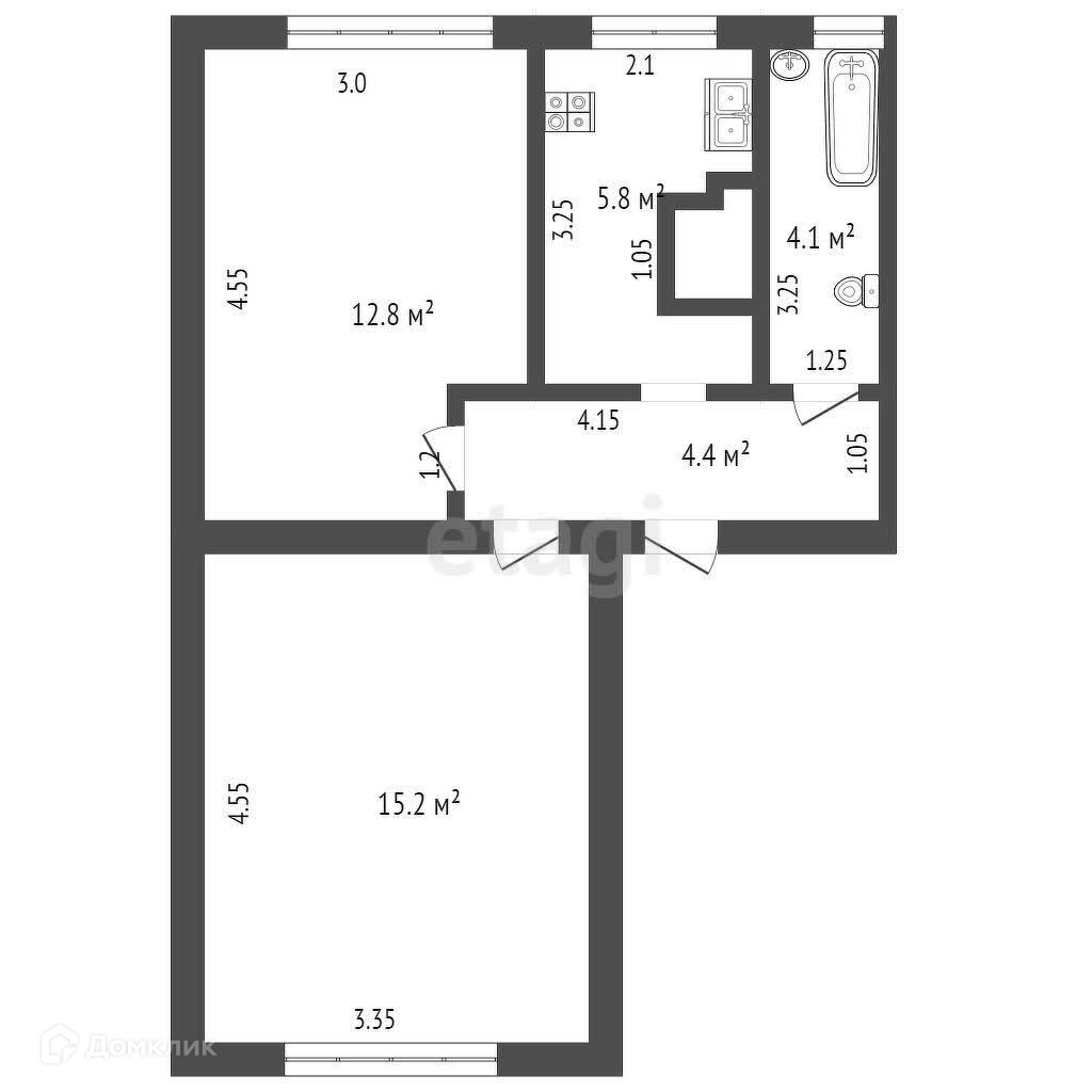 Общая площадь 42.3 м2