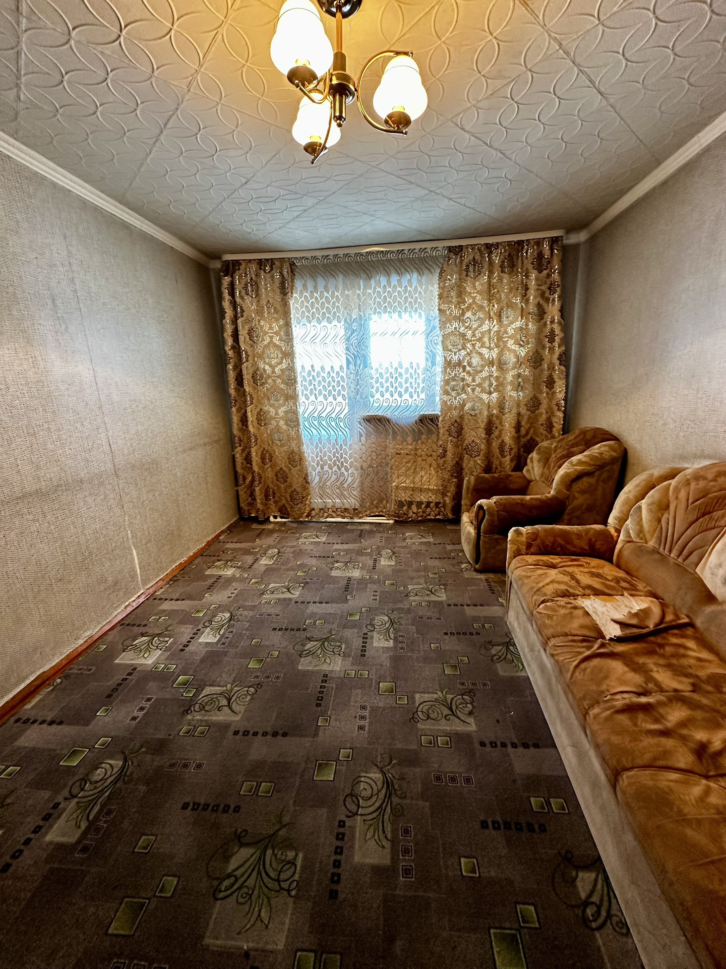 Раздельные комнаты, выход на лоджию через кухню, второй балкон через зал. Просторные комнаты и кухня. Отопление печное, есть возможность провести газ в квартиру.