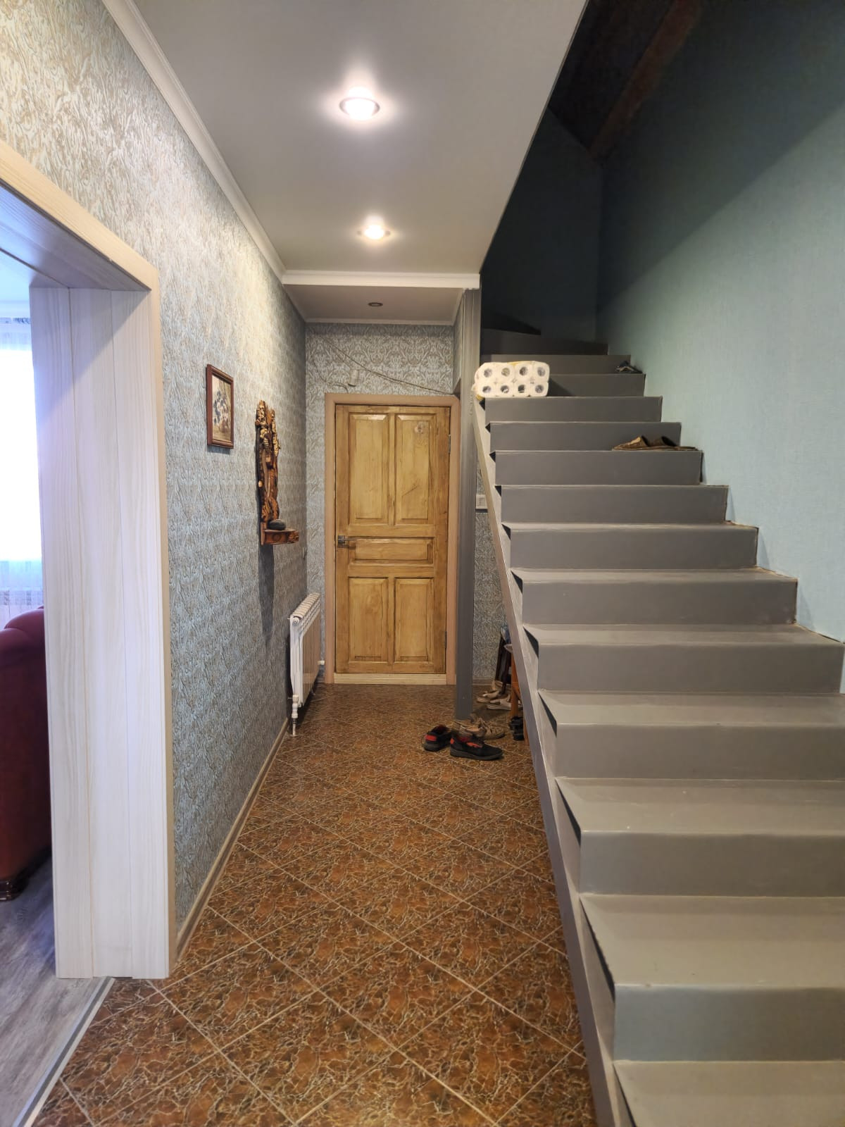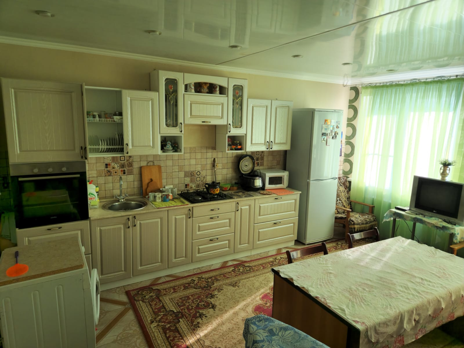 1 этаж дома-(кухня-столовая площадь 21 кв.м с теплым полом),котельная,отапливаемый гараж