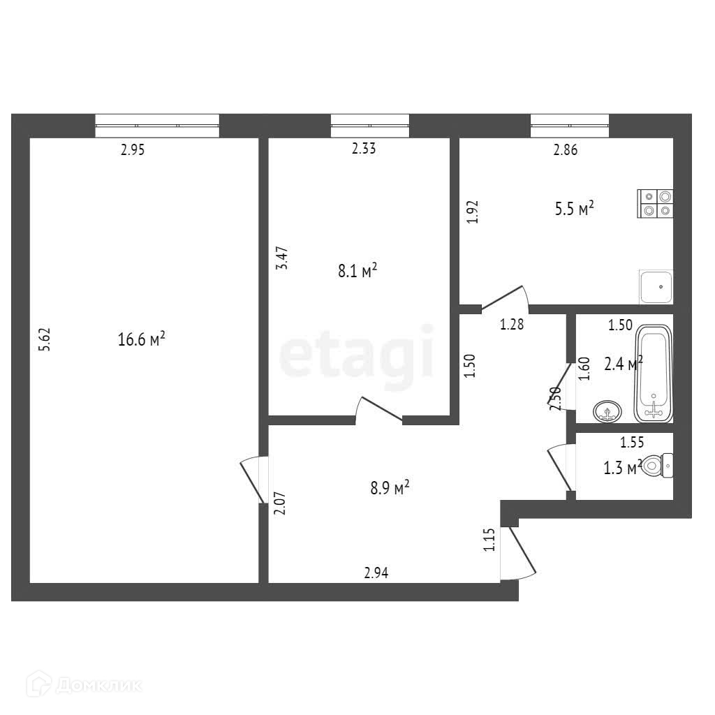 Общая площадь 42.8 м2
