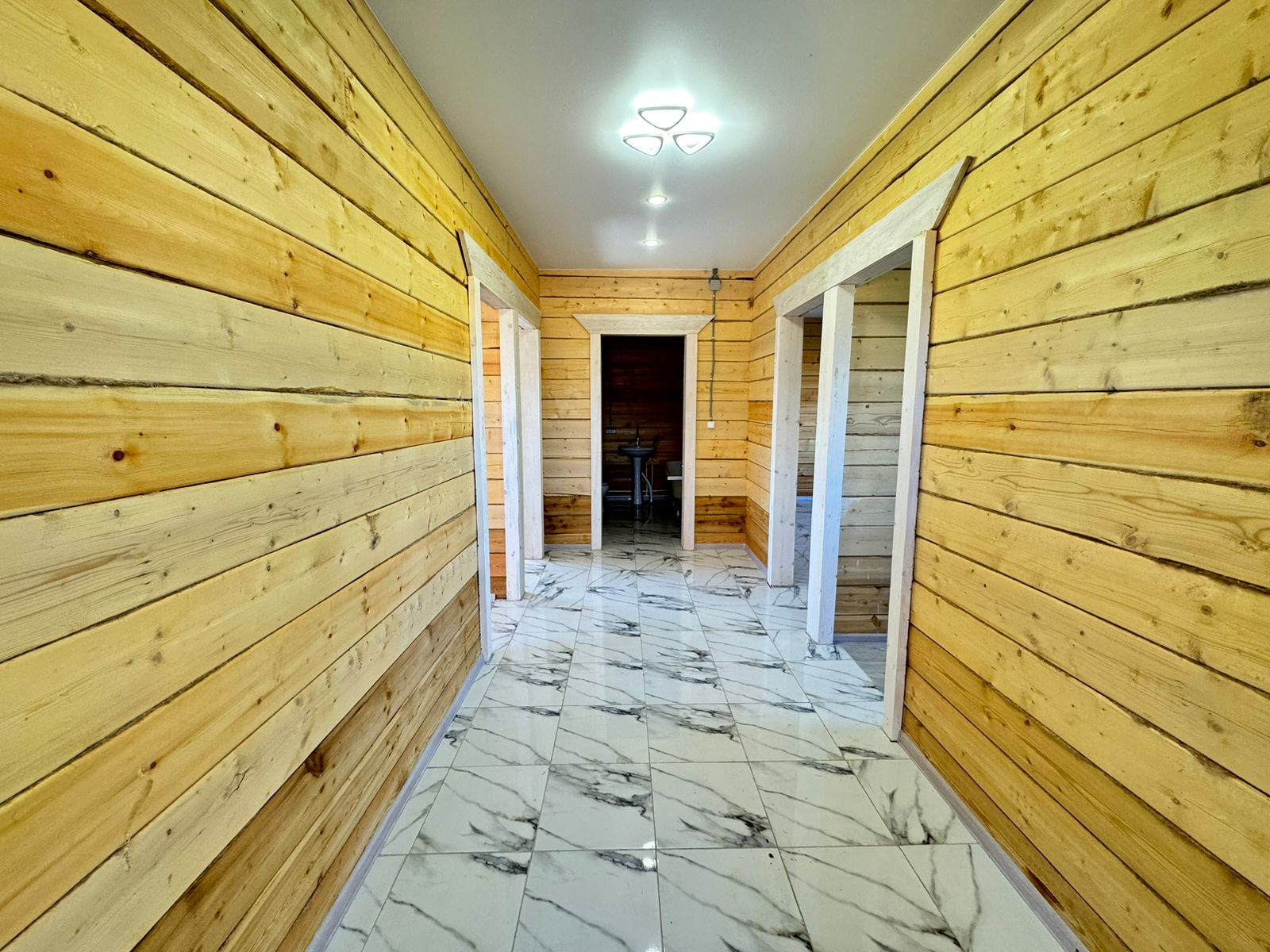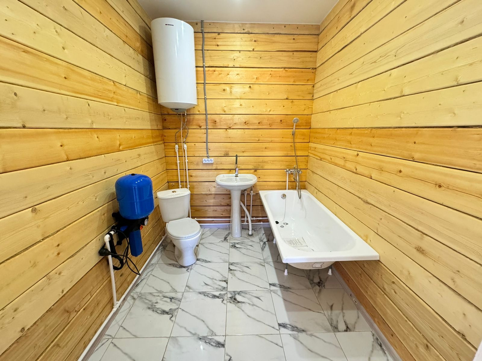Натяжные глянцевые потолки, точечные светильники. Яркое освещение, даже в пасмурные дни в доме светло и уютно! Установлена сантехника: унитаз, ванна, раковина. Установлен водонагреватель, скважинная автоматика. В доме проведены все инженерные коммуникации: разводка электрики и центральный электрощит, разводка водопровода, разводка канализации, отопление теплый пол. Дом очень теплый, зимой вы будете экономить на электричестве (электричество 15 кВт, 3 фазы).