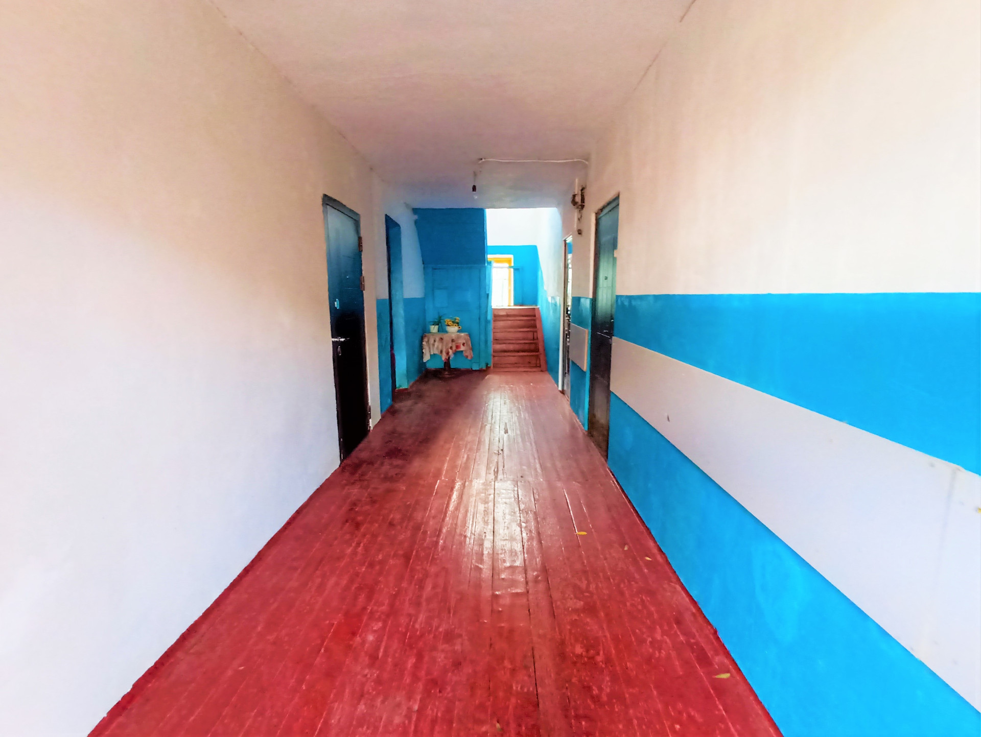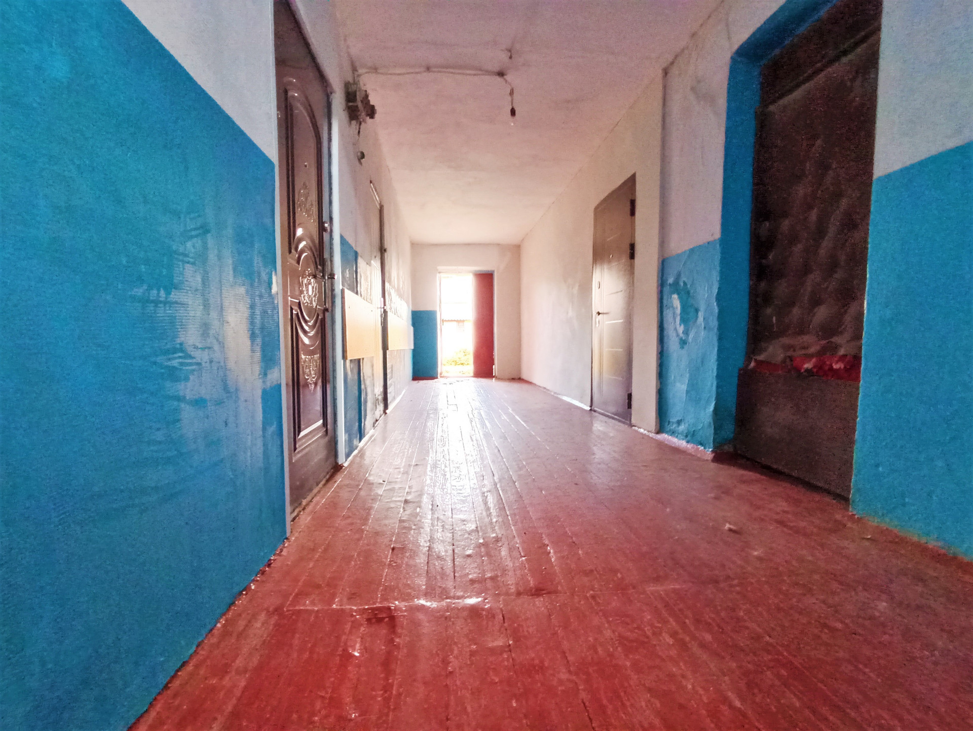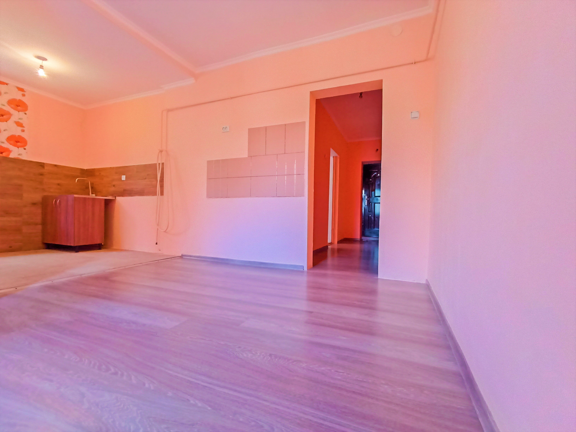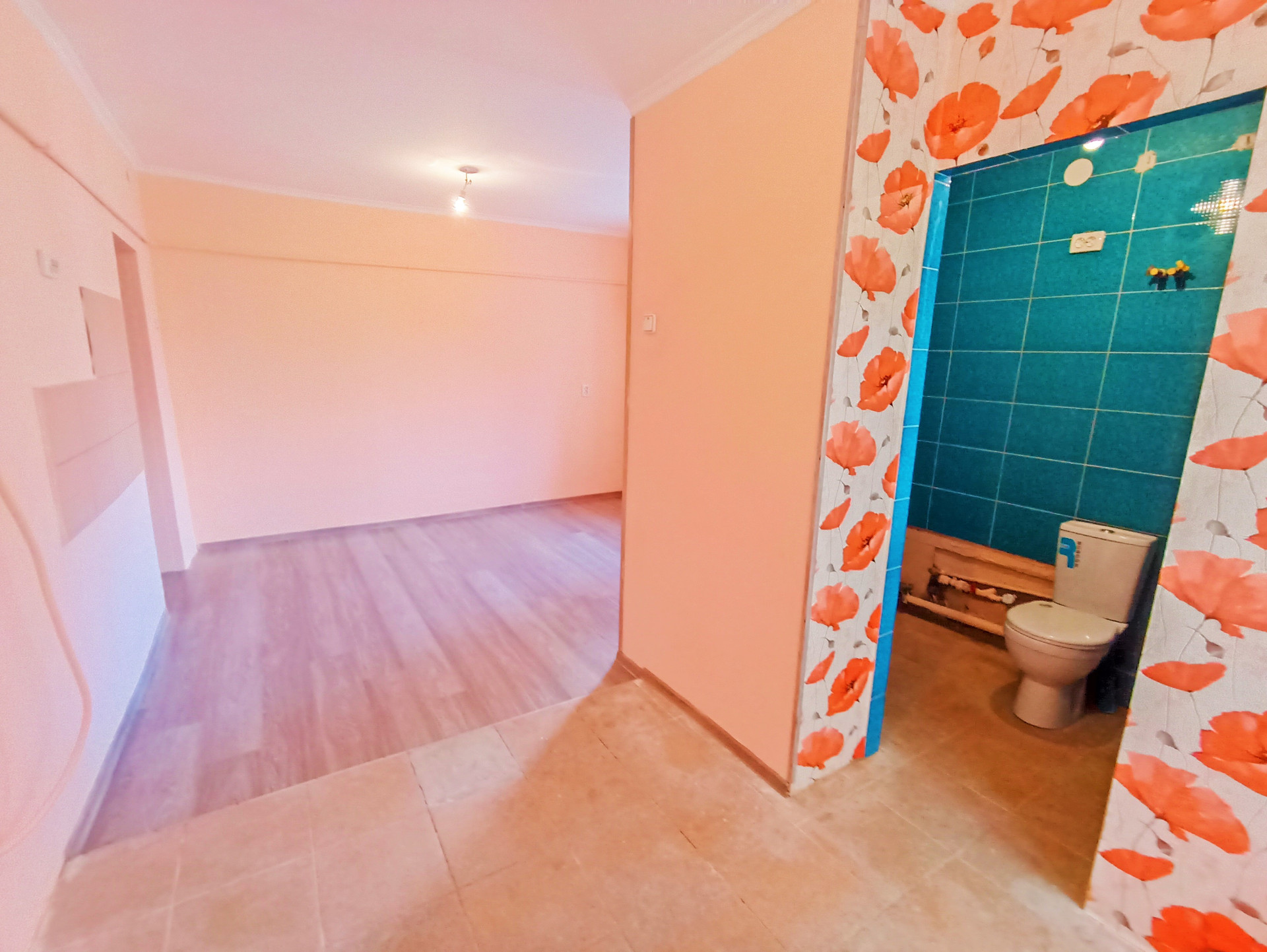 Отделка: косметический ремонт, стены выровнены и покрыты водоустойчивой краской (колер), поклеены обои, потолок покрыт белым матовым цветом, пол- ламинат, плинтусы и дерево.