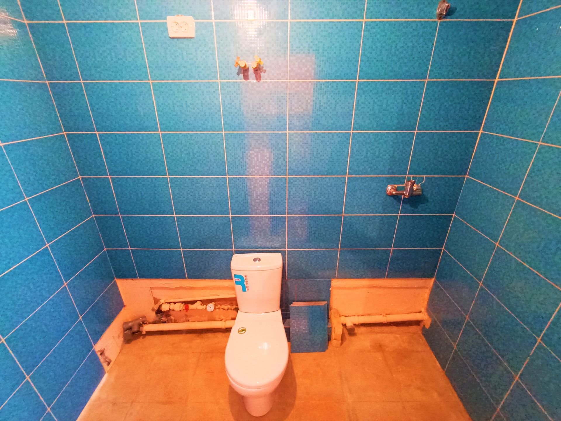 Санузел облицован плиткой (морского цвета).