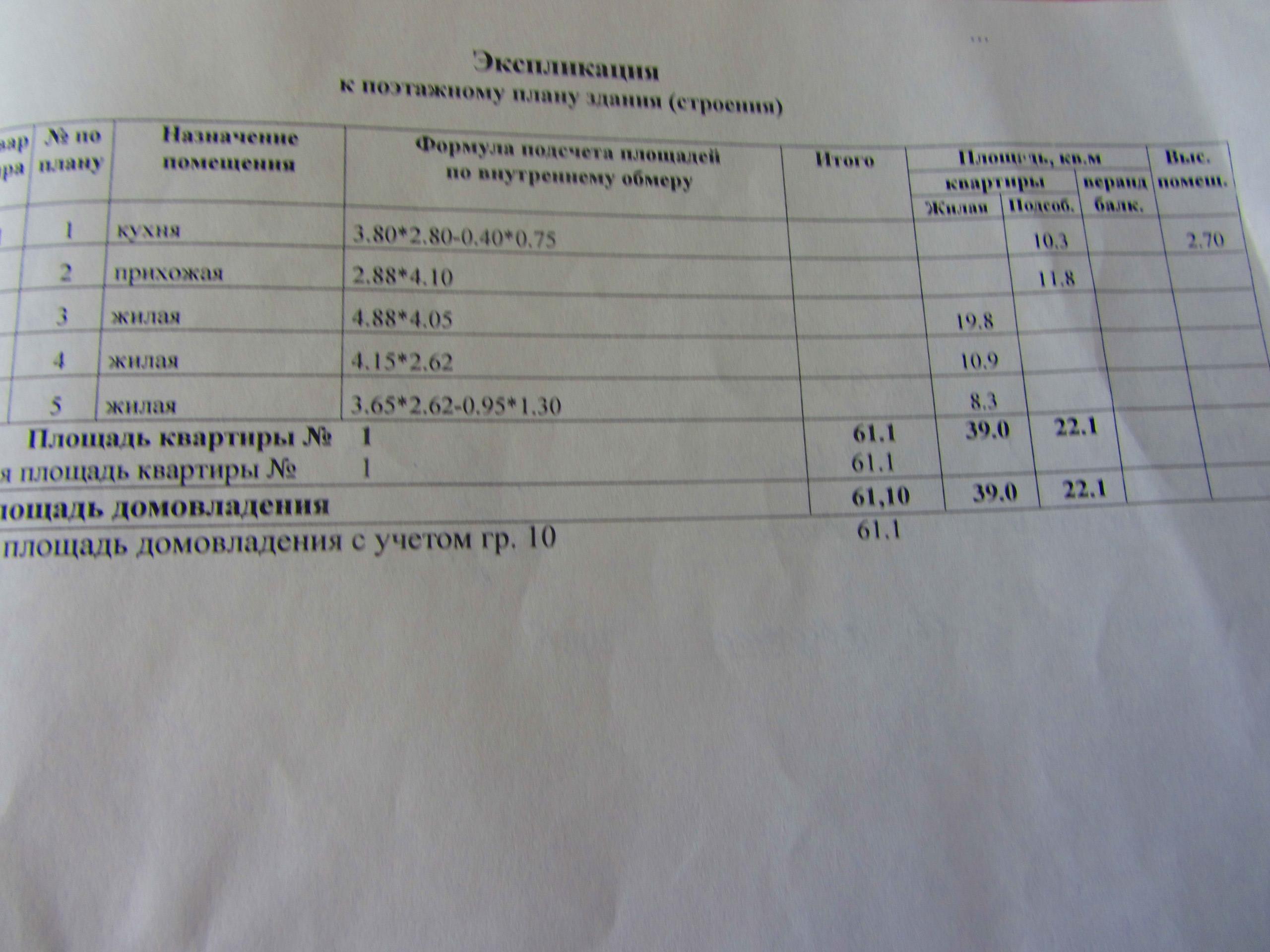 Общая площадь 61 м2