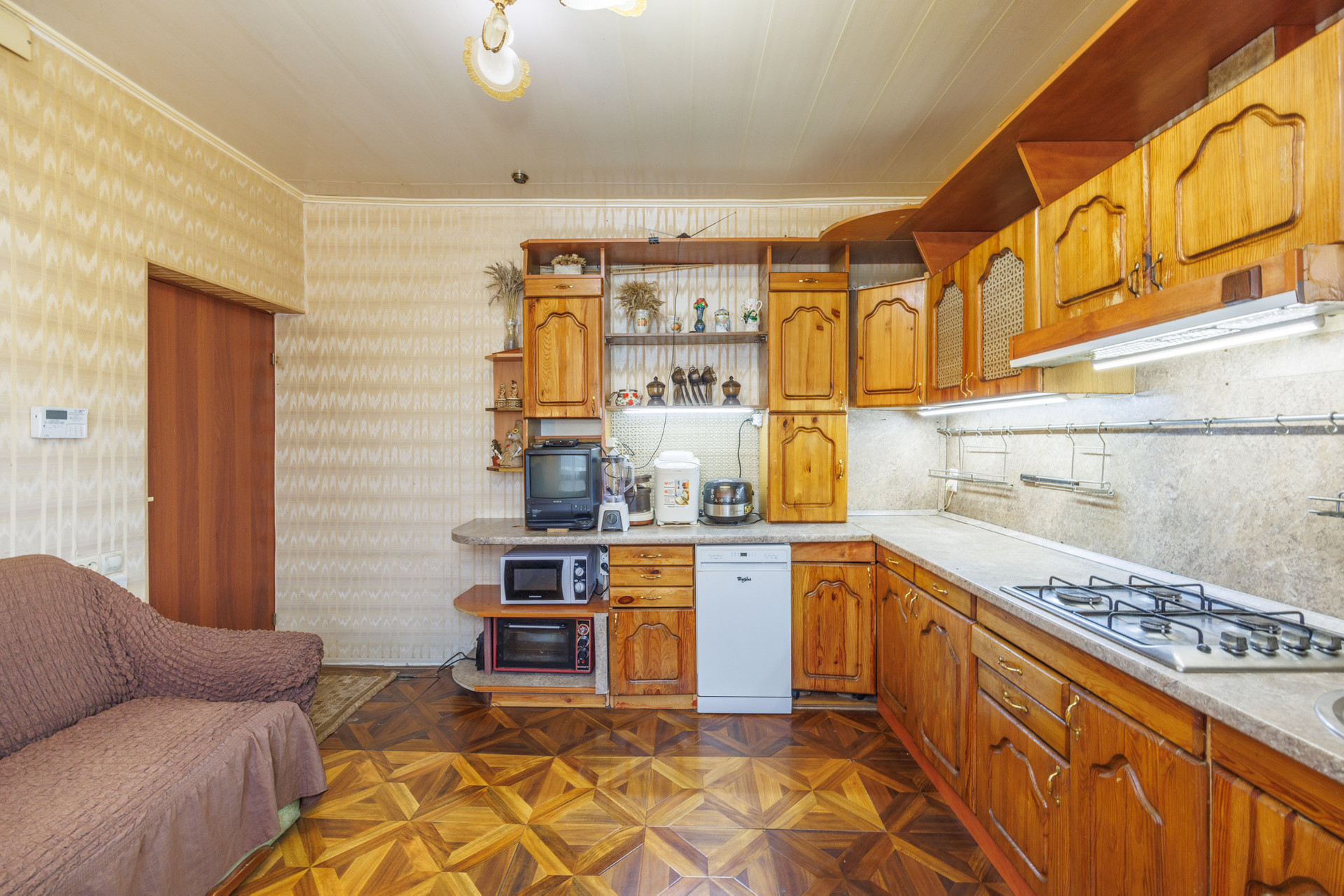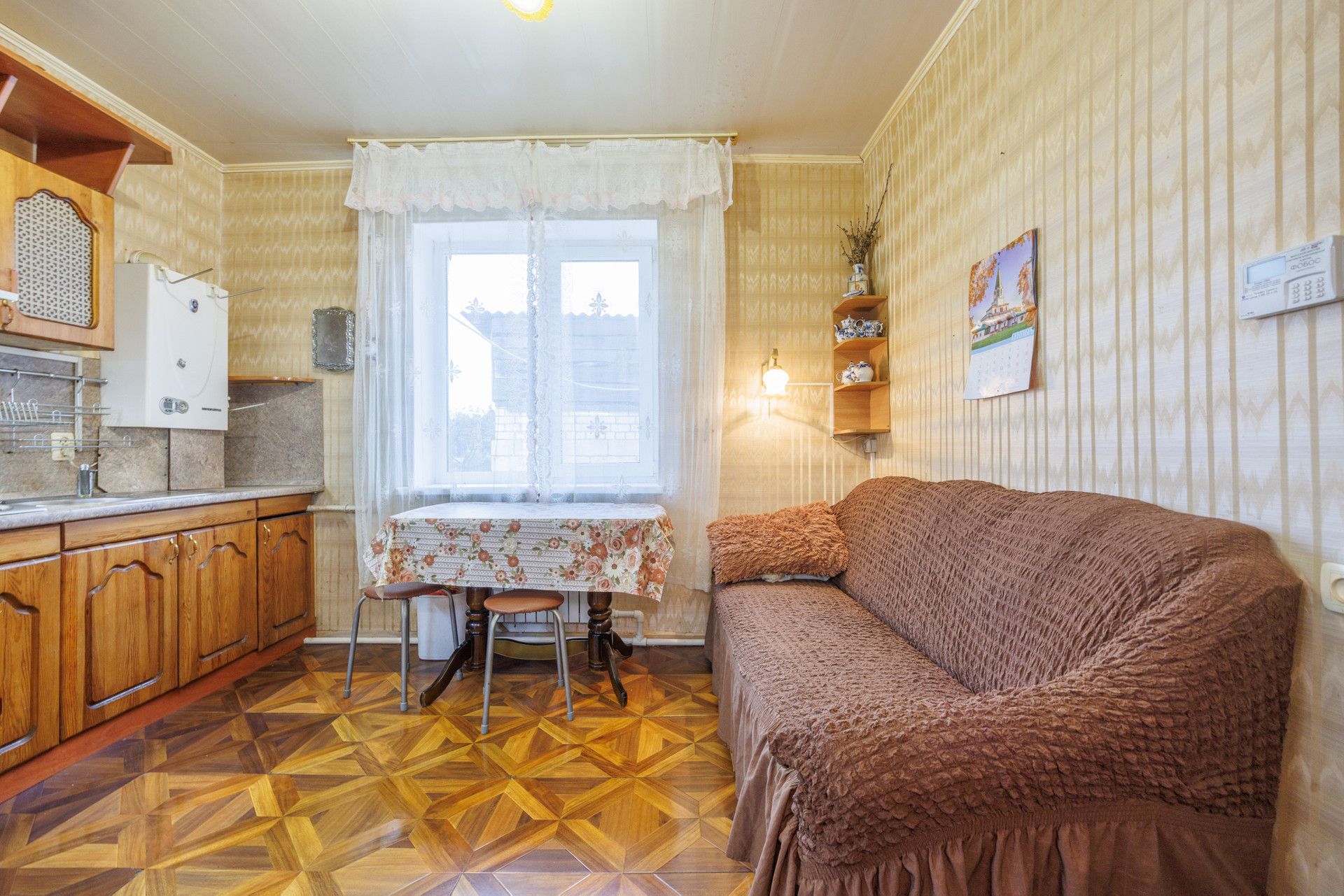 На первом этаже коридор, две просторные жилые комнаты, кухня 12,6 кв.м, санузел.