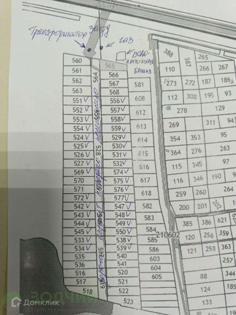 Свободные участки помечены галочкой.