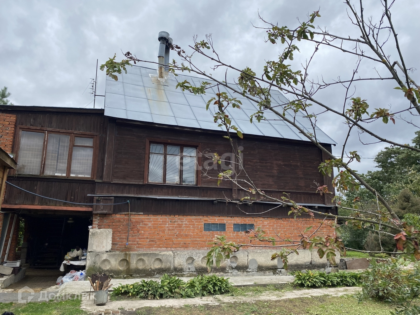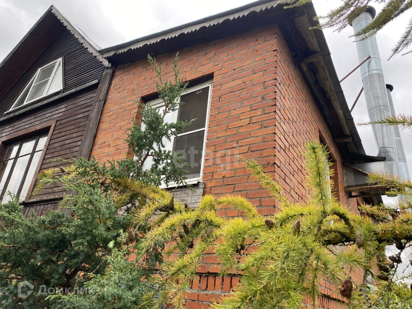 Дом двух этажный бревно+кирпич, есть цокольный этаж. Общая площадь дома 173,5 кв.м. Цокольный этаж из бетонных блоков и кирпича: гараж и мастерская. Первый этаж - веранда, кухня, сан. узел, общая комната с камином; второй - две спальни, панорамное окно!