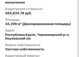 Продаётся участок 15,7 соток под индивидуальное жилищное строительство в с. Окунёвка Черноморского района. Коммуникации рядом, кадастрирование проведено, дорога заасфальтирована. Категория земель: земли поселений (земли населенных пунктов). Участок находится в 150 метрах от открытого моря, удобный спуск к морю, великолепные песчаные пляжи с чисто... |