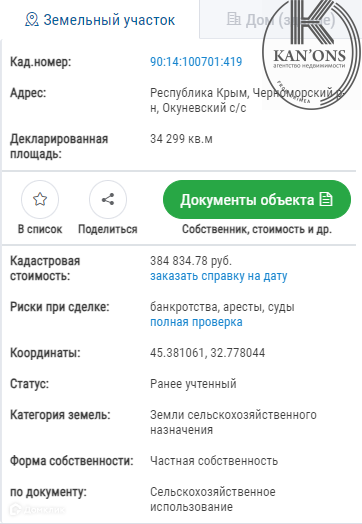 Продаётся земельный участок 14 гектаров в с.Окуневка Черноморского района.