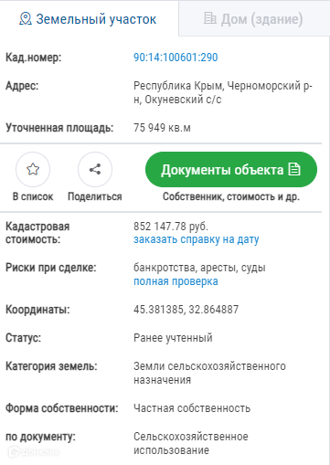 Продаётся земельный участок 75 га в с.Окуневка Черноморского района.