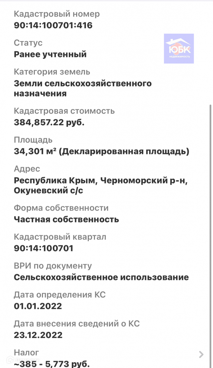 Стоимость недвижимости: