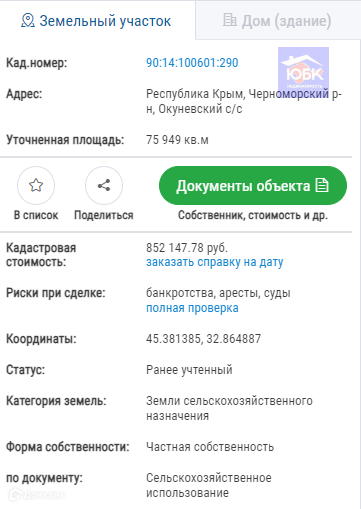 Продаётся земельный участок 75 га в с.Окуневка Черноморского района.