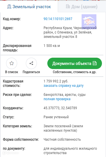 Участок под ИЖС, 15 сот. на продажу в селе Оленевка, Зелёная улица, 2