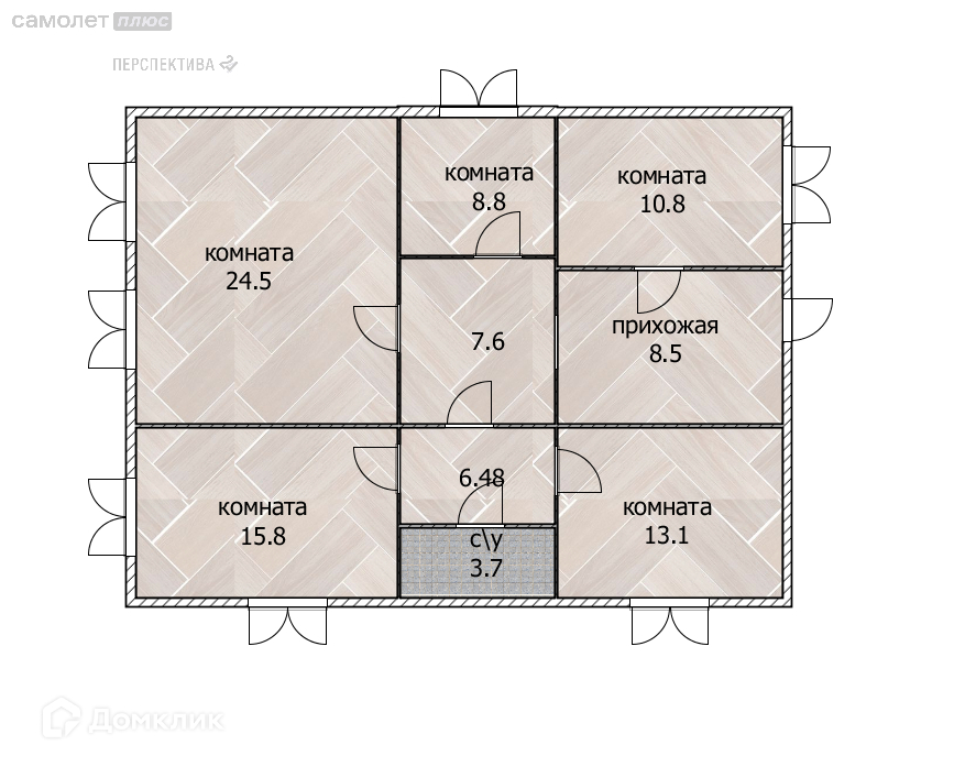 Жилая площадь 57.2 м2