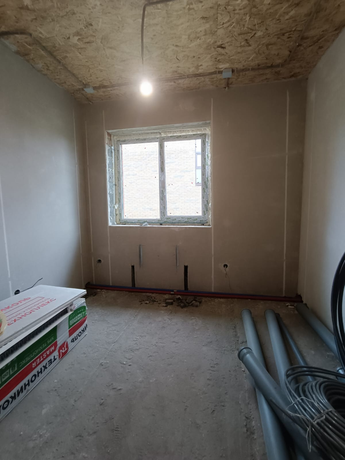 Отделка предчистовая: стены отштукатурены под маяки, ламинированы под обои, произведена стяжка пола.