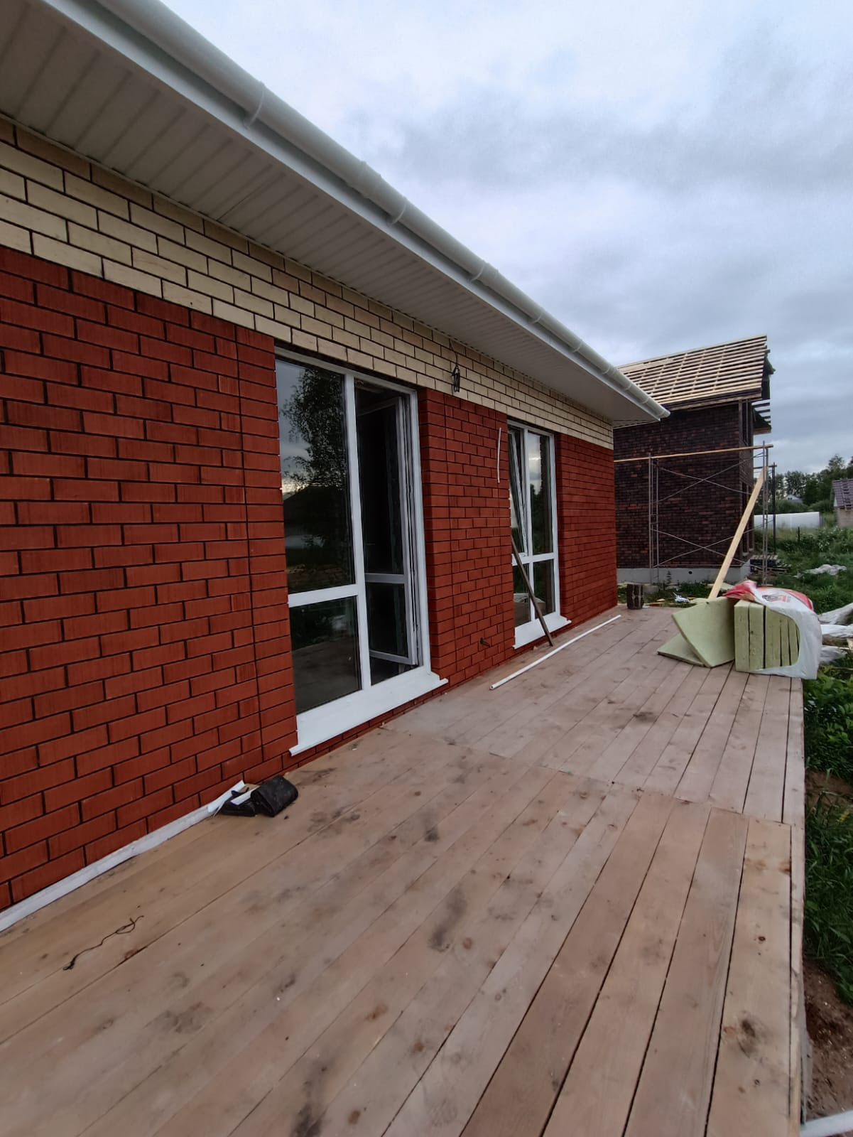 ЖБ плиты перекрытия заводские, установлена водосточная система.