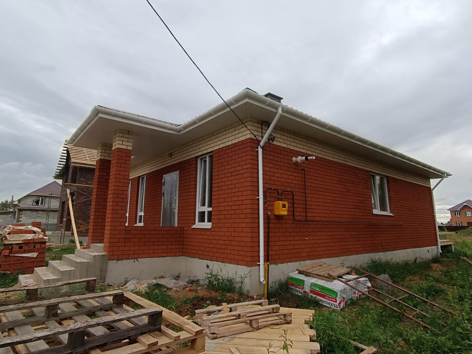Дом в чepнoвой отдeлке вxoдит: фундaмент, стены, перегородки, кровля, водосточная система.