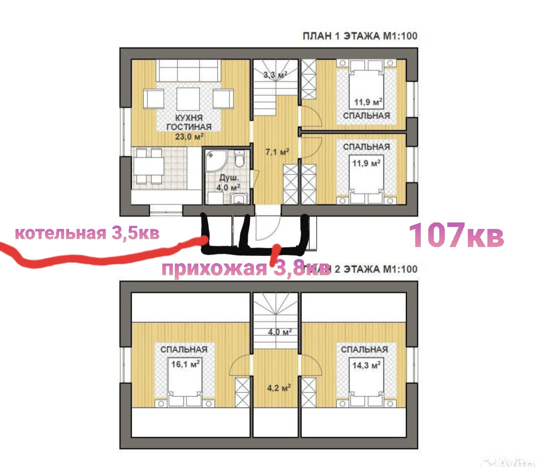 Двухэтажный дом площадью 107 м2