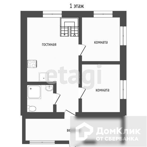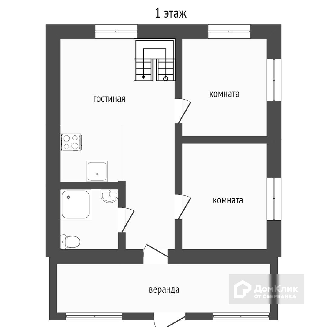 На первом этаже дома располагается большая кухня-гостинная занимающая половину первого этажа, с отдельным выходом на веранду. Широкий коридор. Дополнительно имеется 2 гостевые комнаты, большой совмещенный санузел с душевой кабиной.