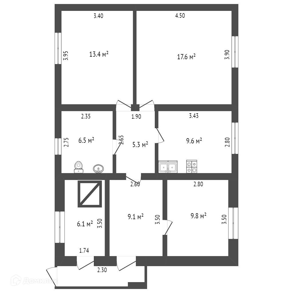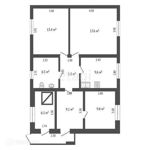 Общая площадь 58.5 м2