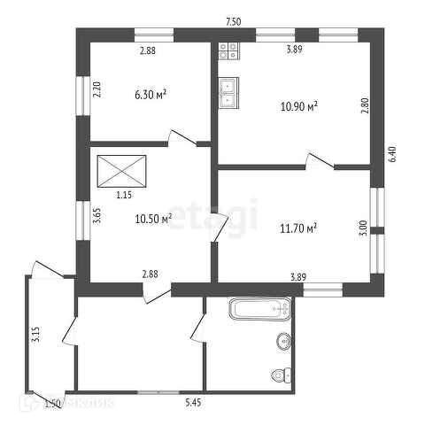 Общая площадь 85.7 м2