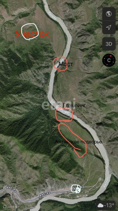 Участок расположен в красивейшем уголке Республики Алтай , в стороне , где находится санаторий «Санаторно-курортный комплекс компании Газпром Алтайское подворье». В удаленности около одного километрах протекает красивейшая река Катунь.