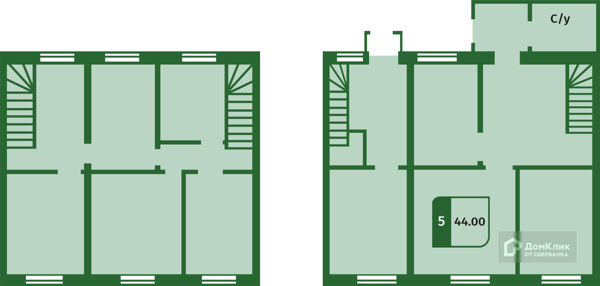 Общая площадь: 44 м2.