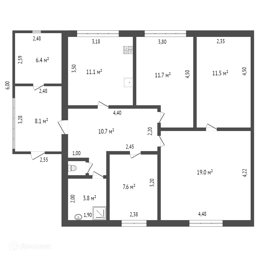 Общая площадь 75.3 м2