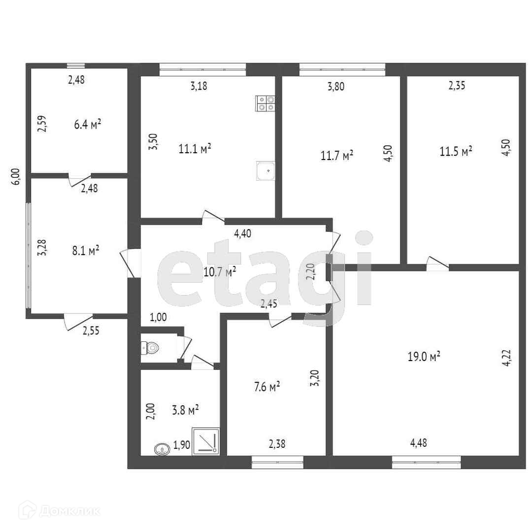 1-этажный дом, 75.3 м2, на продажу в селе Онохино, улица Строителей