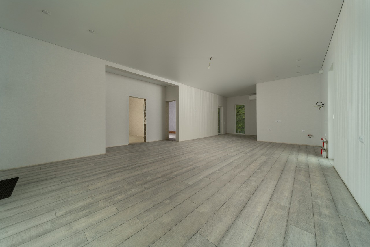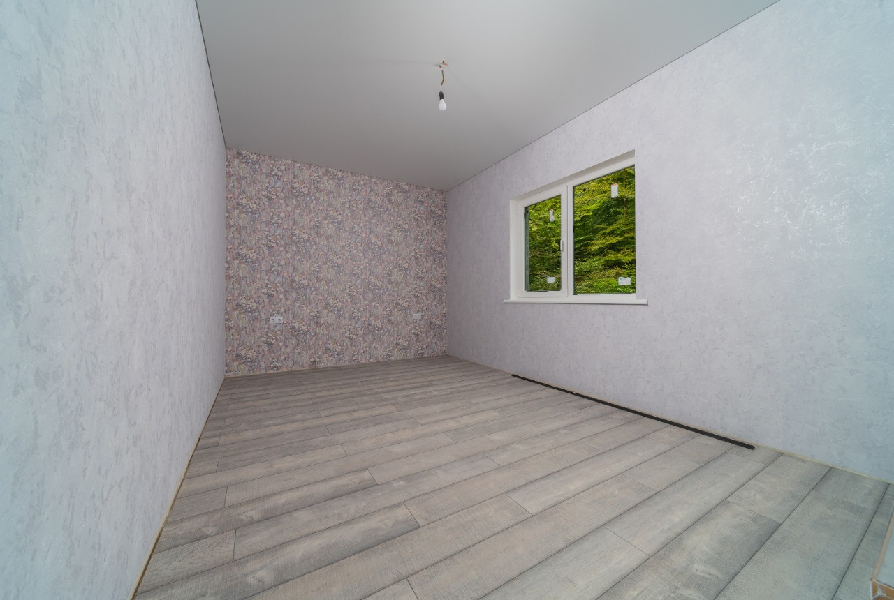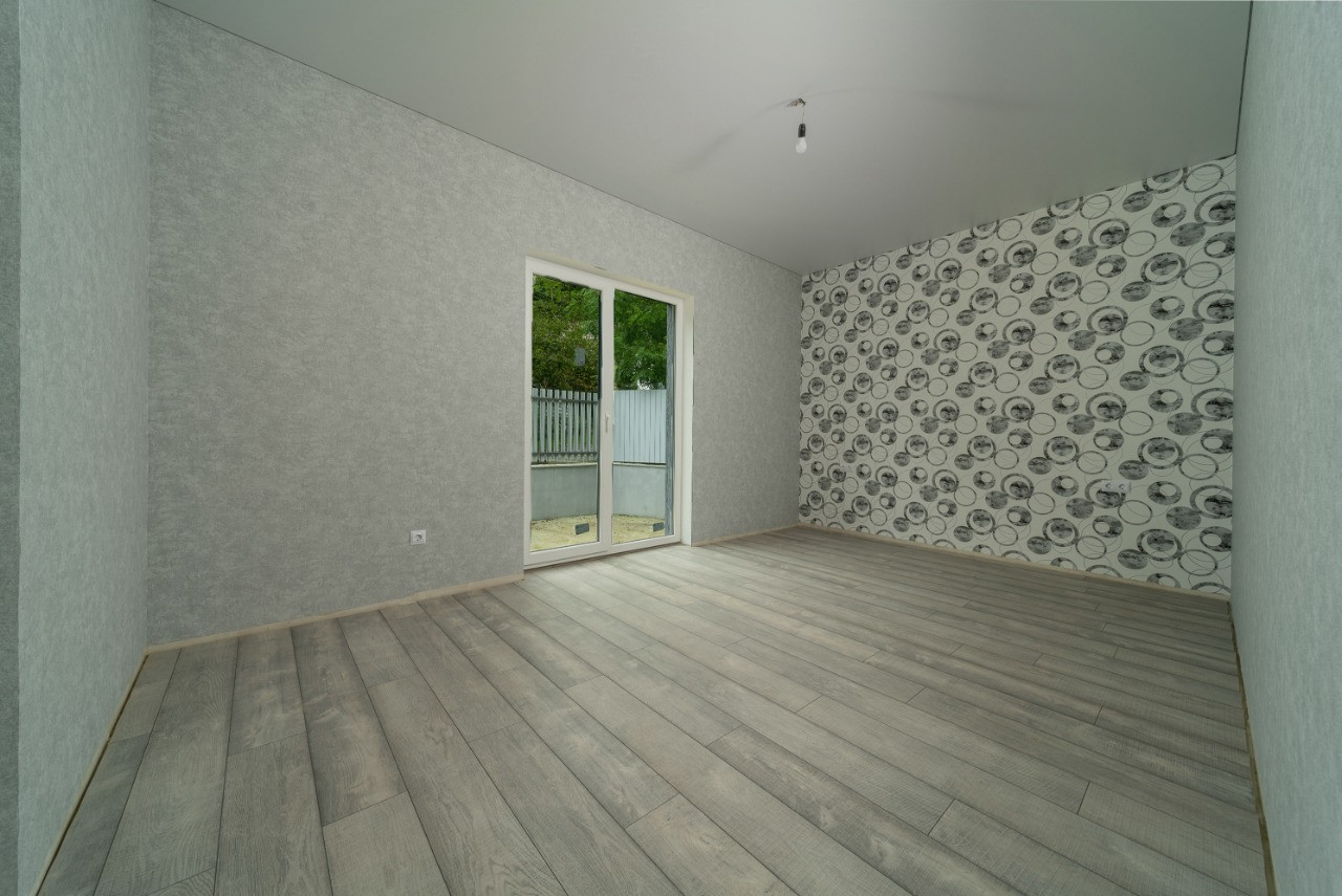 одноэтажный дом площадью около 110 кв.м. с внутренней и внешней отделкой.