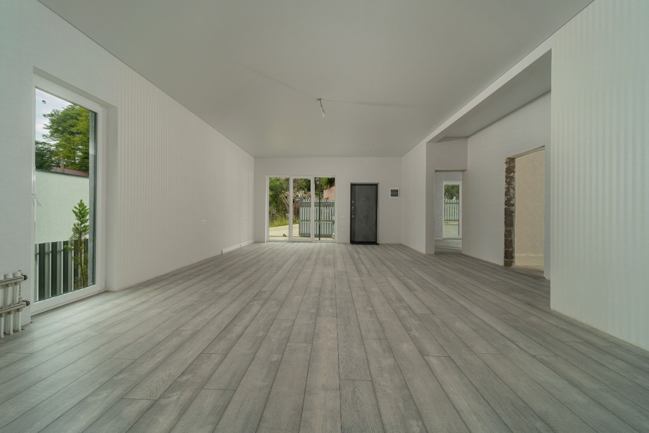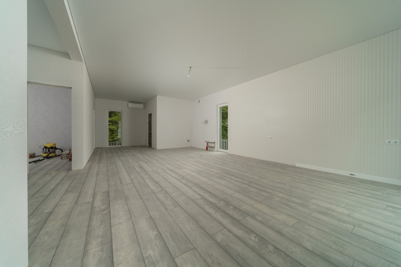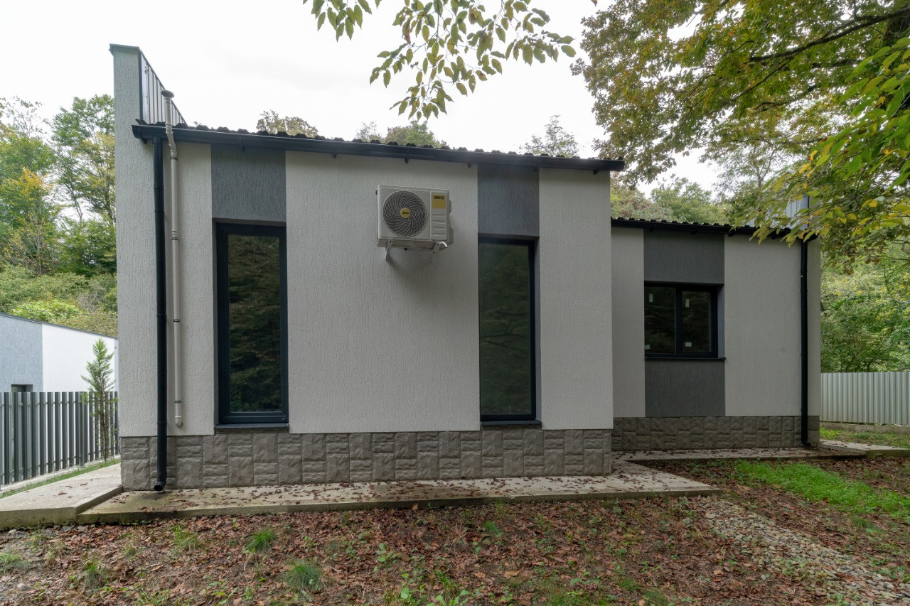 одноэтажный дом площадью около 110 кв.м. с внутренней и внешней отделкой.